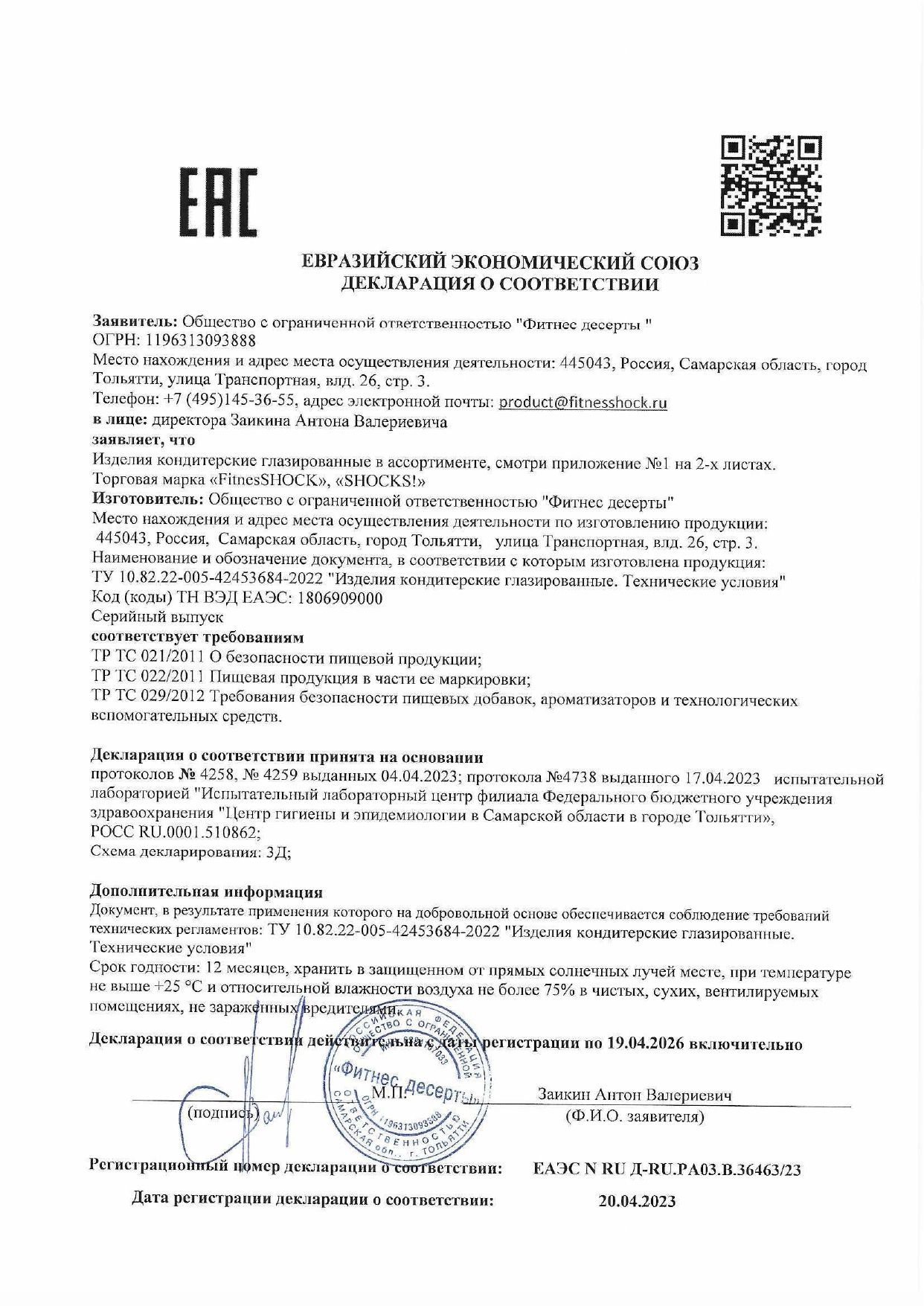 | Фирма-производитель | ООО "ФИТНЕС ДЕСЕРТЫ" |