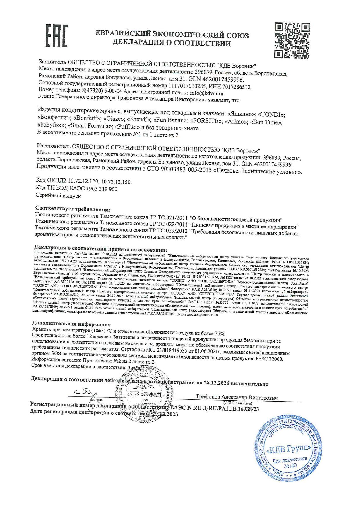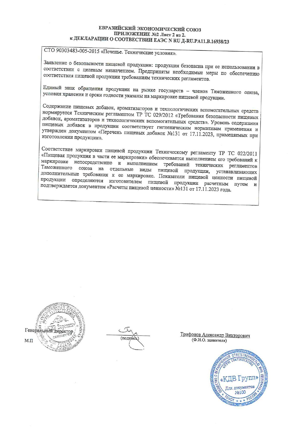 | Соответствует требованиям ГОСТа | ТУ 10.72.12-001-00356151-2001 |