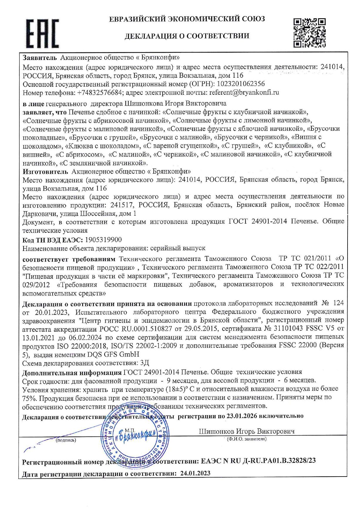 Печенье сдобное БРЯНКОНФИ "Солнечные фрукты" с малиновой начинкой, 500 г, УТ-00030150