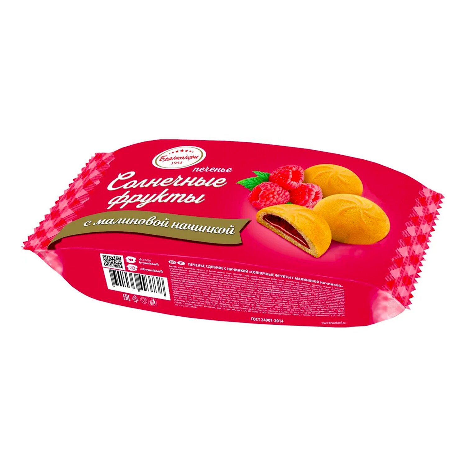 Печенье сдобное БРЯНКОНФИ "Солнечные фрукты" с малиновой начинкой – сладкое и полезное кондитерское изделие. Лакомство мягкое, пористое. Рекомендуется подавать на стол с кофе, чаем, соком, морсом, молочными продуктами.