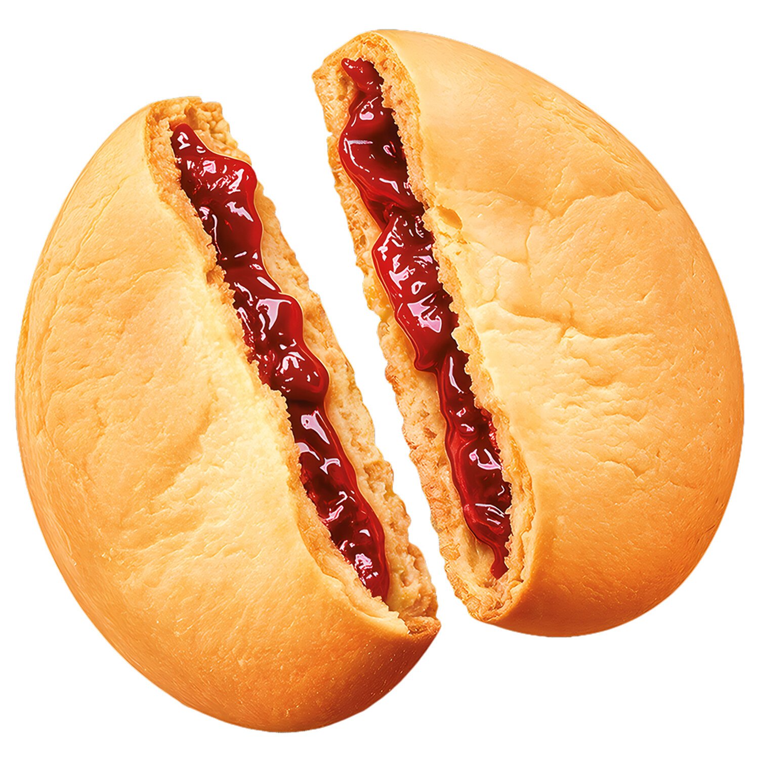 Состав: мука пшеничная, масло растительное, сахар, начинка (желирующий агент(пектин), загуститель (глицерин, влагоудерживающий агент (сорбиновый сироп), регулятор кислотности (кислота лимонная), концентрированный сок клубники, ароматизаторы), глюкоза, пастеризованный меланж, сироп инвертный (глюкозо-фруктозный сироп), молоко сухое обезжиренное, разрыхлитель (бикарбонат натрия), соль, эмульгатор (лецитин соевый), ароматизаторы.