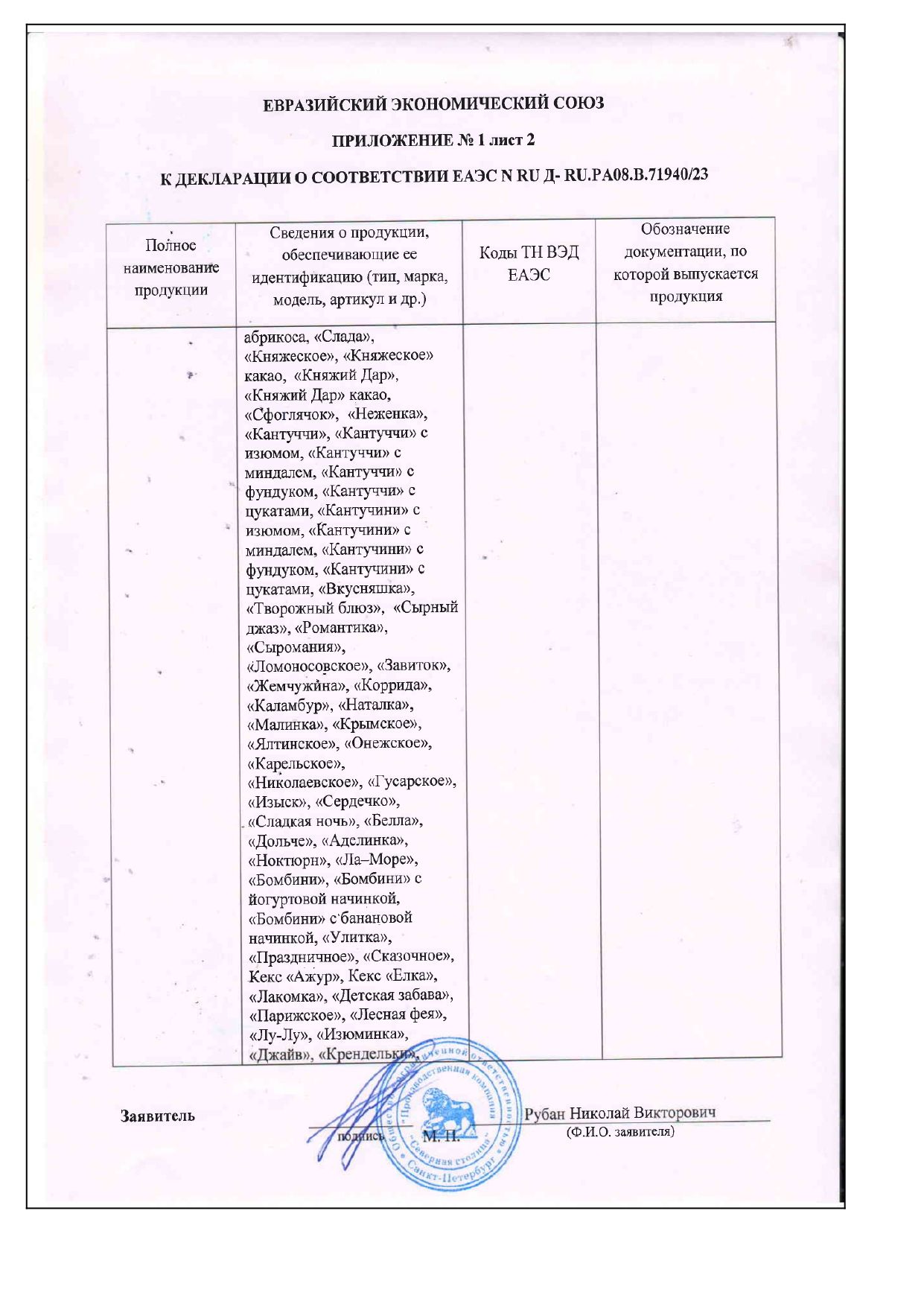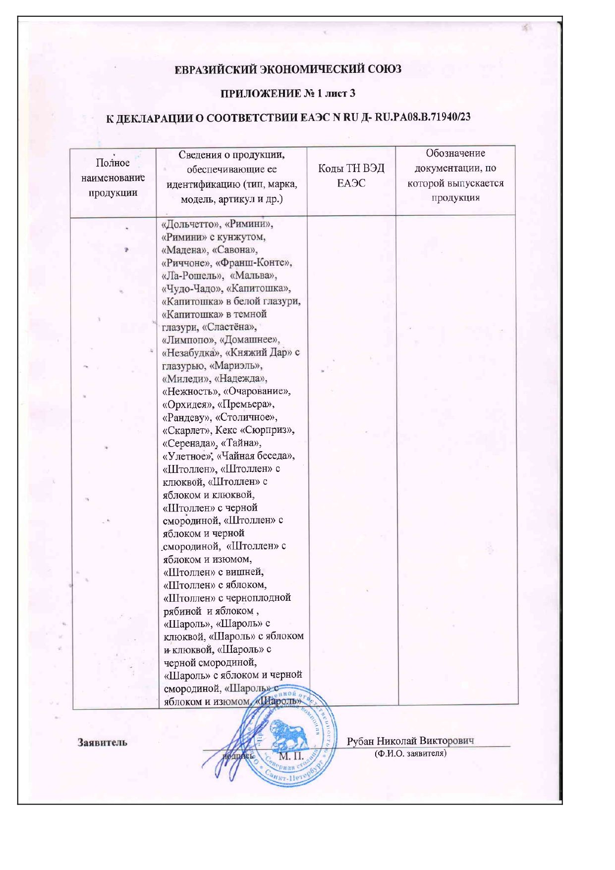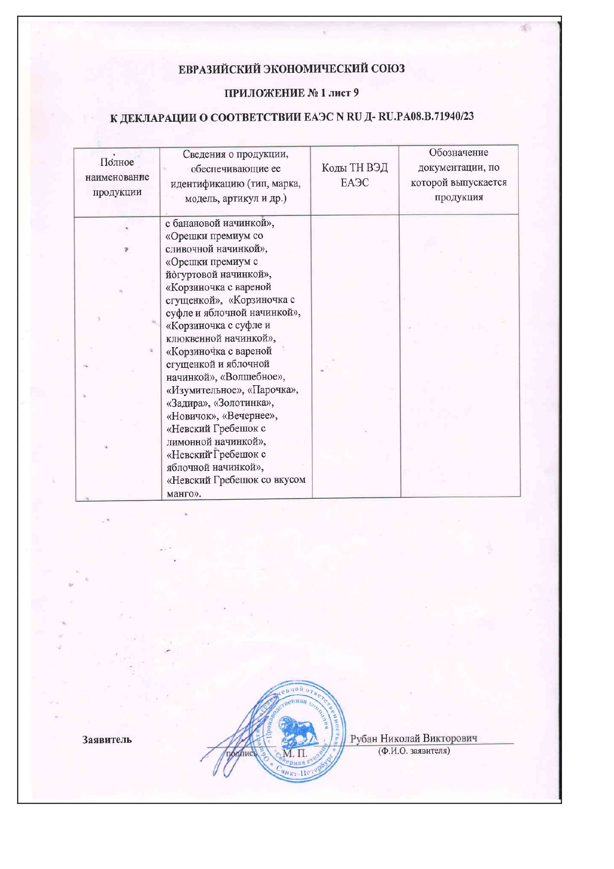 Состав: мука пшеничная высшего сорта, маргарин для слоеного теста (дезодорированные растительные масла, вода, эмульгаторы (моно- и диглицериды жирных кислот, эфиры полиглицерина и жирных кислот), соль, ароматизатор "Масло", регулятор кислотности лимонная кислота, консерванты (сорбиновая кислота, бензоат натрия), краситель (каротины)), маргарин для выпечки (дезодорированные растительные масла, вода, эмульгаторы (моно- и диглицериды жирных кислот, полиоксиэтилен, лецитин соевый)), соль, консерванты (сорбиновая кислота, бензоат натрия), ароматизатор "Масло", краситель (каротины), регулятор кислотности лимонная кислота), соль, какао-порошок, регулятор кислотности лимонная кислота, ароматизатор.