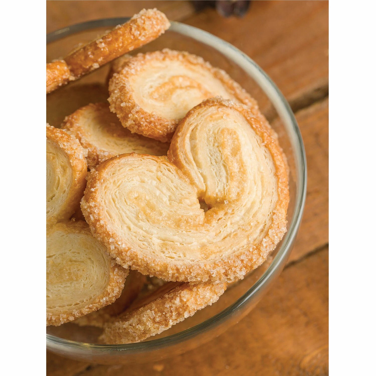 Печенье слоеное СЕВЕРНАЯ СТОЛИЦА "Валентинки" – это тонкие хрустящие слоеные печенюшки в форме сердечка, посыпанные сахарным песком.