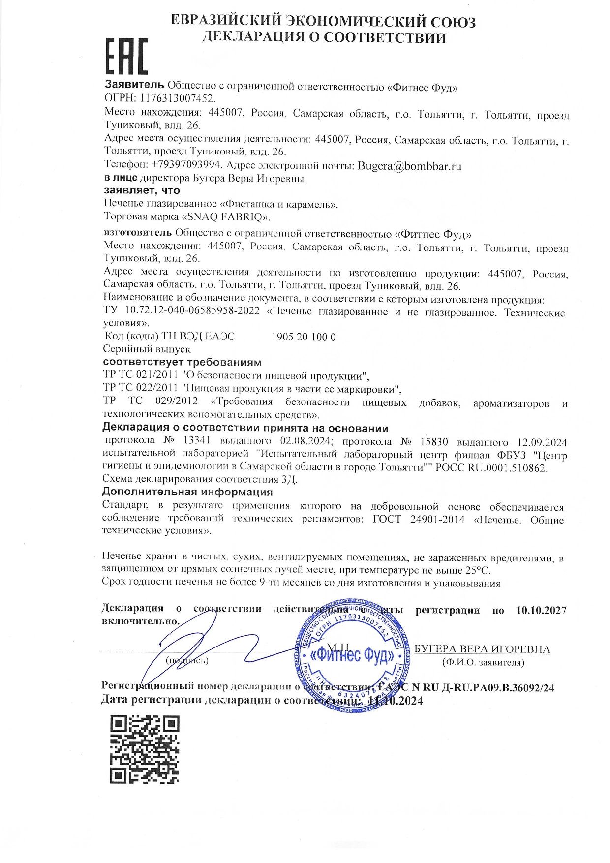 | Формат | печенье в индивидуальной упаковке |