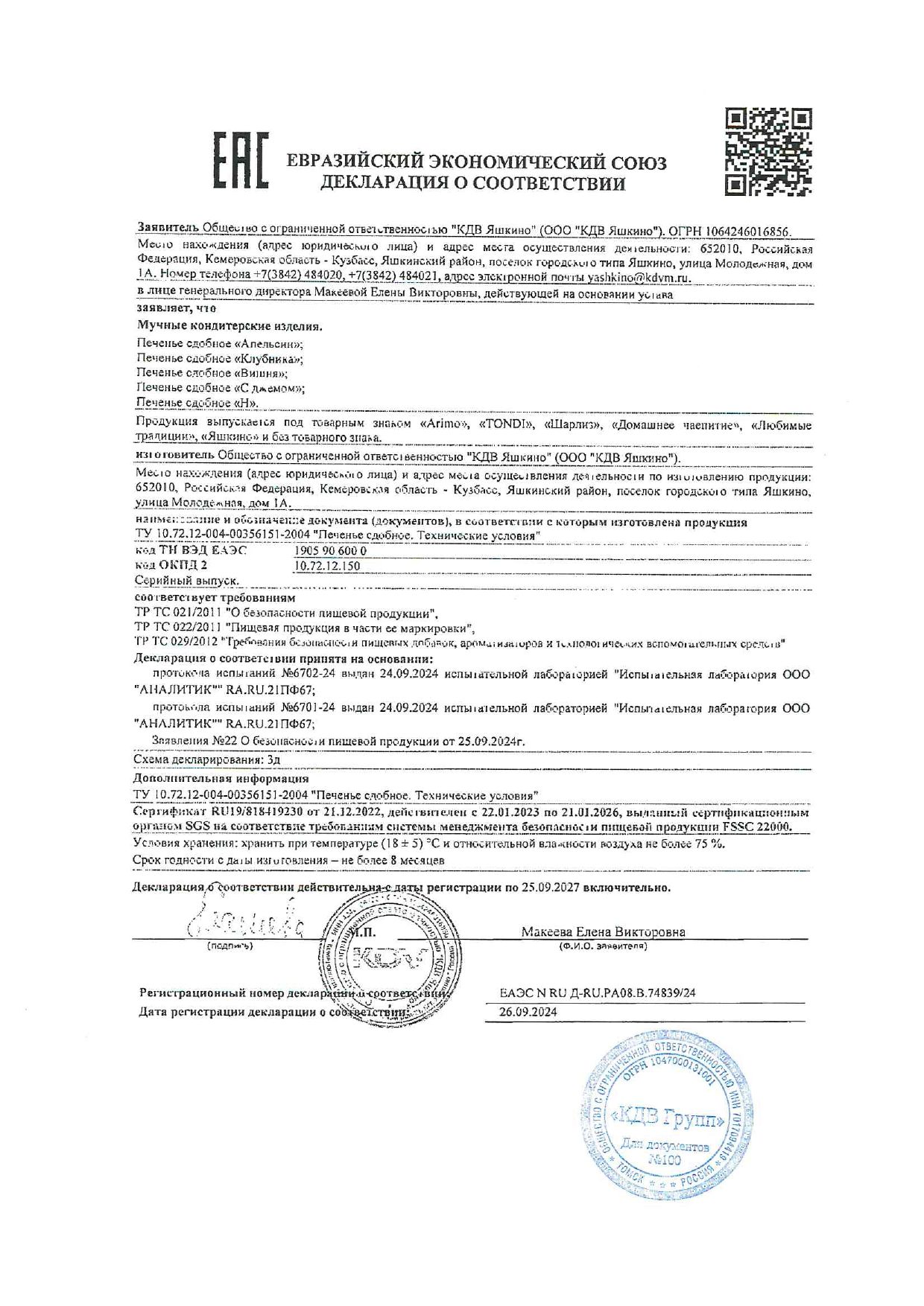 Сдобное, воздушное бисквитное печенье, покрытое слоем джема и глазури. Апельсиновый джем не содержит искусственных красителей и ароматизаторов.