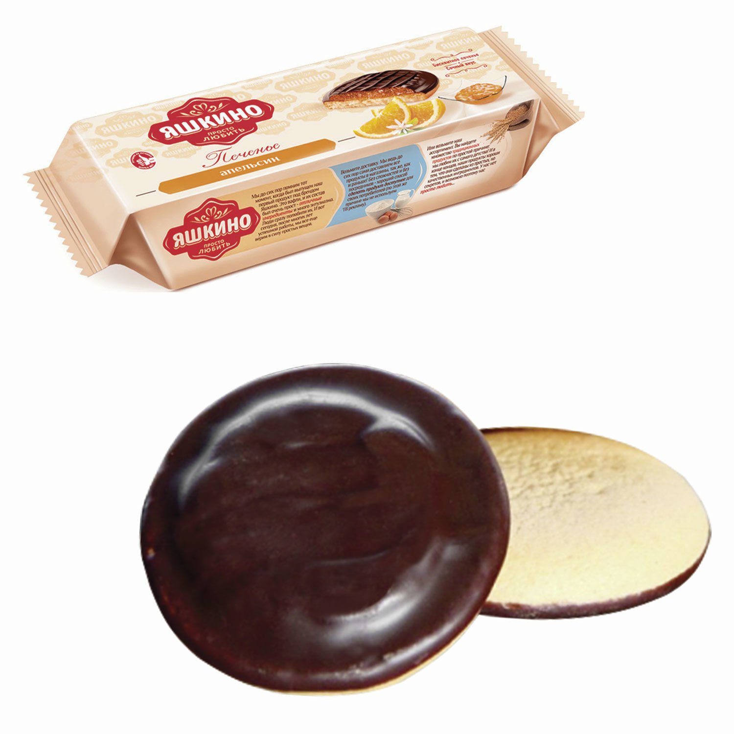 Печенье ЯШКИНО "Апельсин", сдобное, с бисквитом, джемом и шоколадной глазурью, 137 г, ЯП206