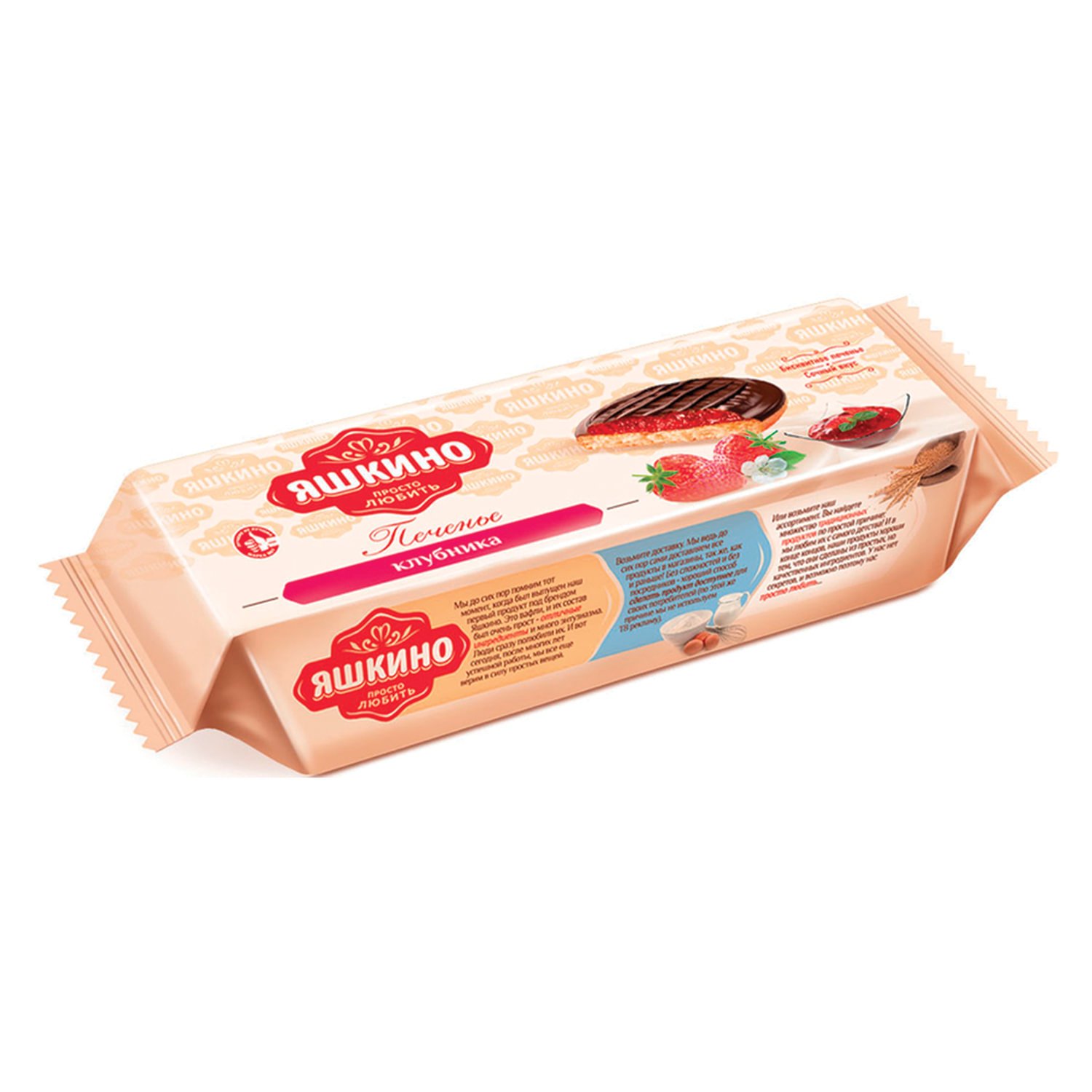 Печенье ЯШКИНО "Клубника", сдобное, с бисквитом, джемом и шоколадной глазурью, 137 г, ЯП208