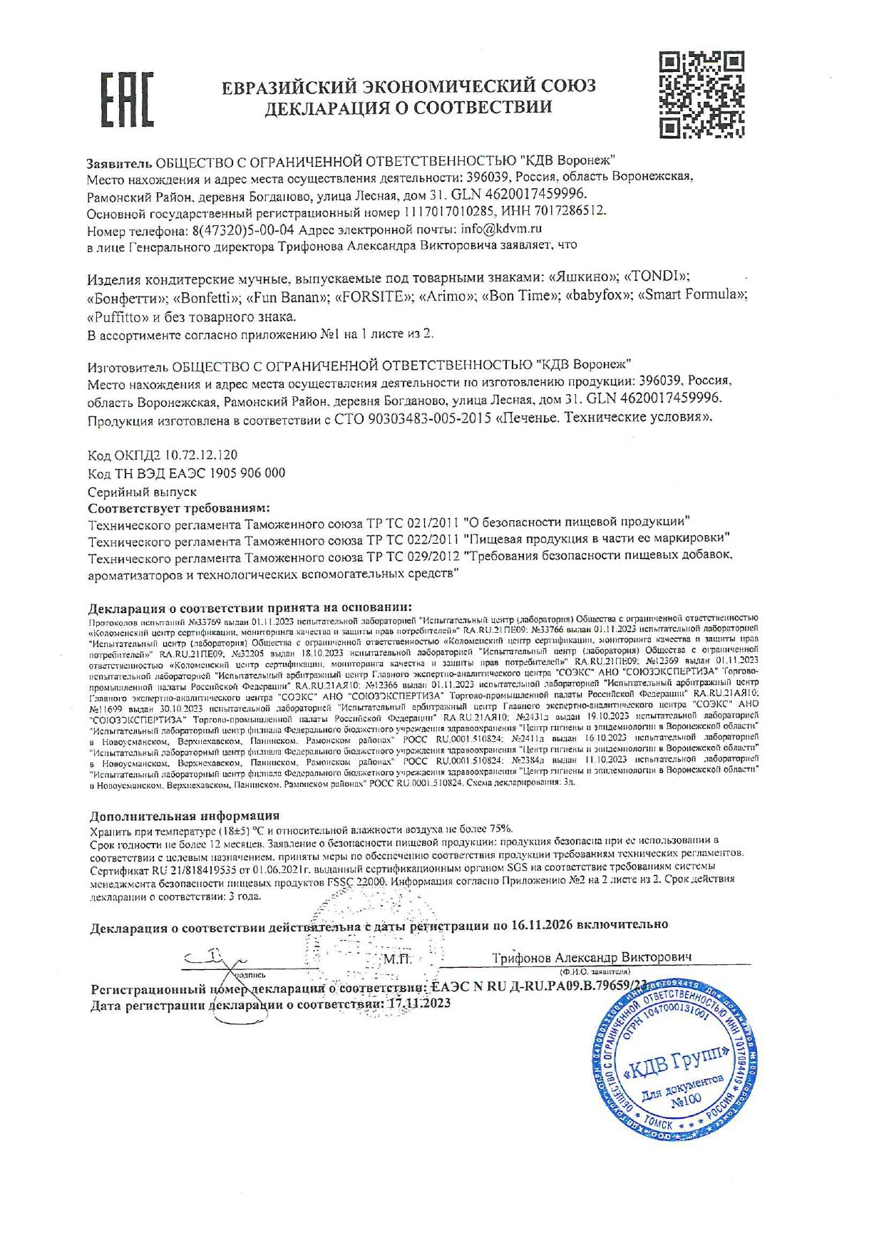 | Соответствует требованиям ГОСТа | ТУ 10.72.12-004-00356151-2004 |