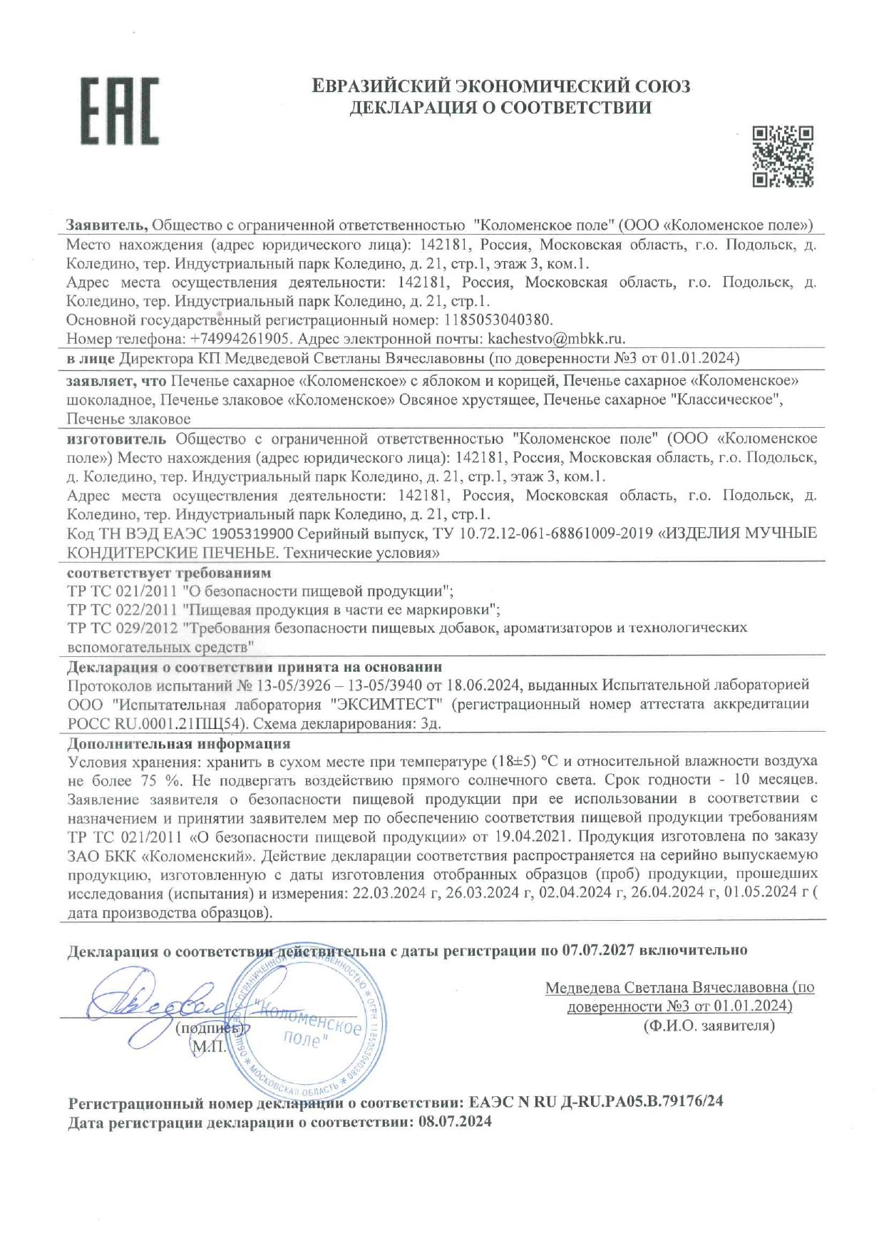 Печенье злаковое КОЛОМЕНСКОЕ, 240 г