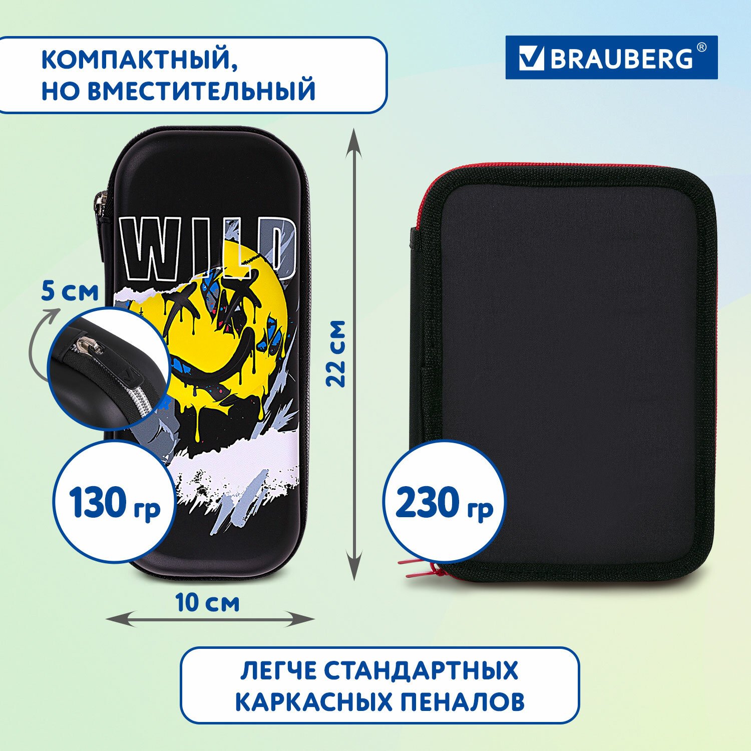 Пенал каркасный BRAUBERG выполнен из материала EVA с эффектом объемного изображения. Вмещает до 50 канцелярских предметов стандартного размера.
