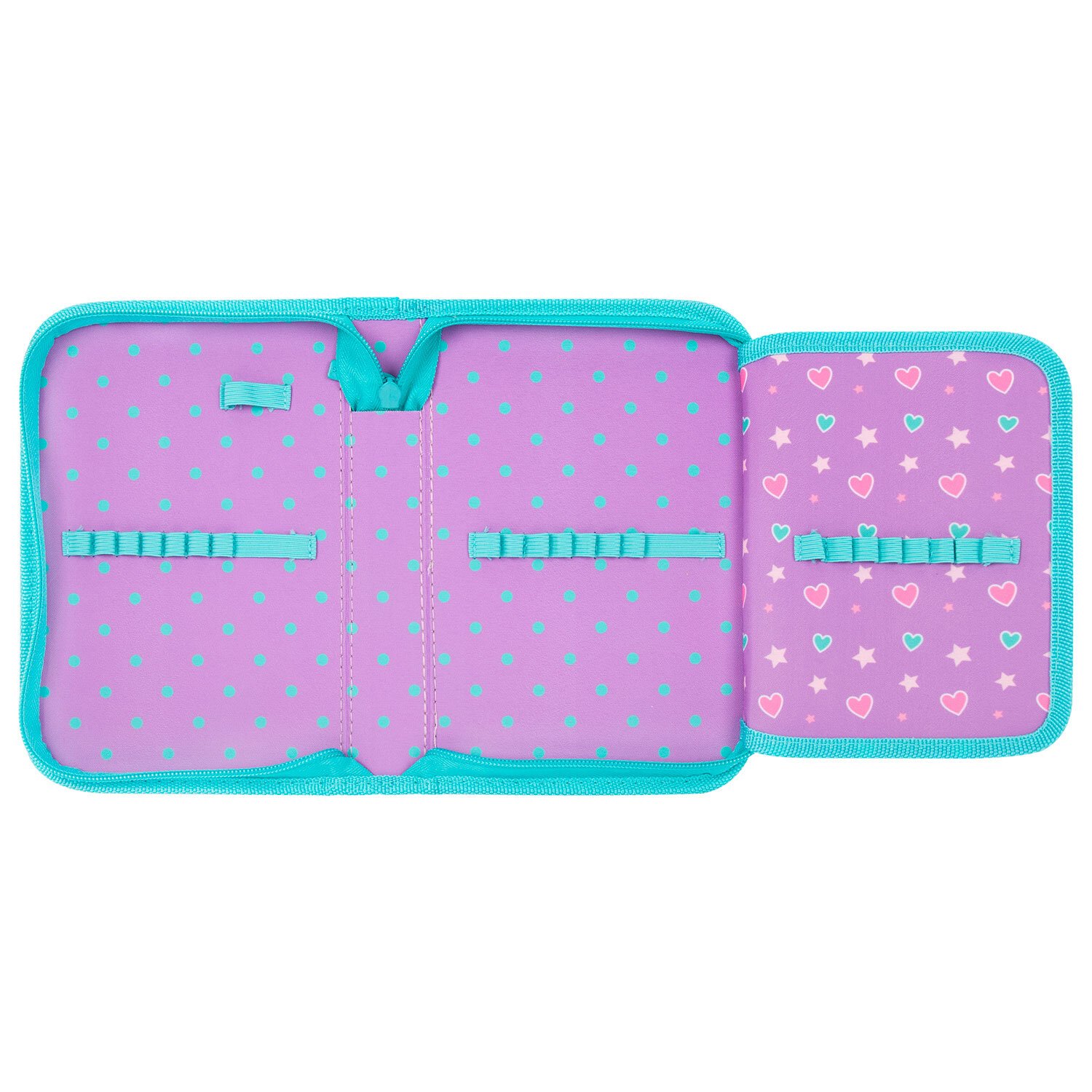 Материал снаружи и внутри – полиэстер с цветной печатью и ярким дизайном. Основа пенала – плотный картон. Такая конструкция отличается износостойкостью и прочностью, она поможет защитить канцелярские принадлежности от повреждений.