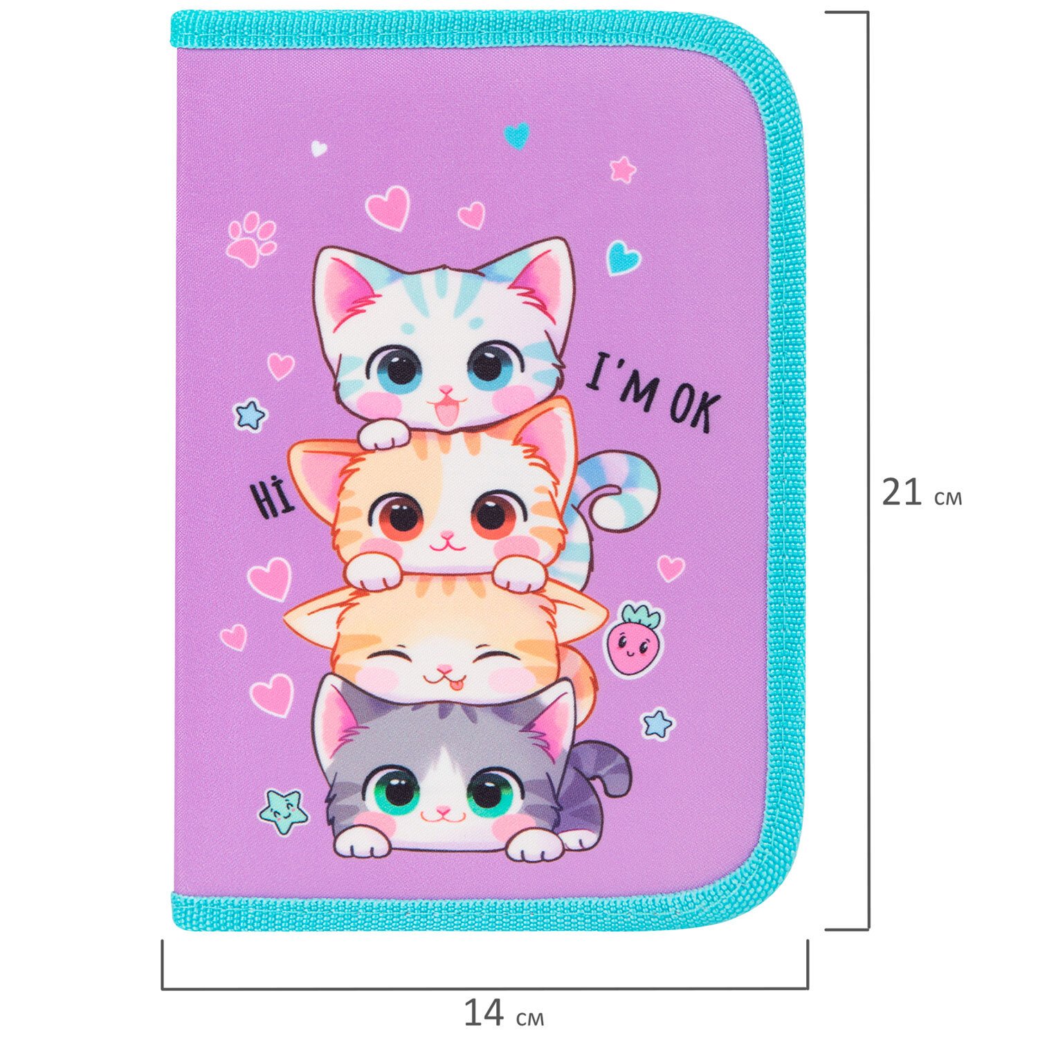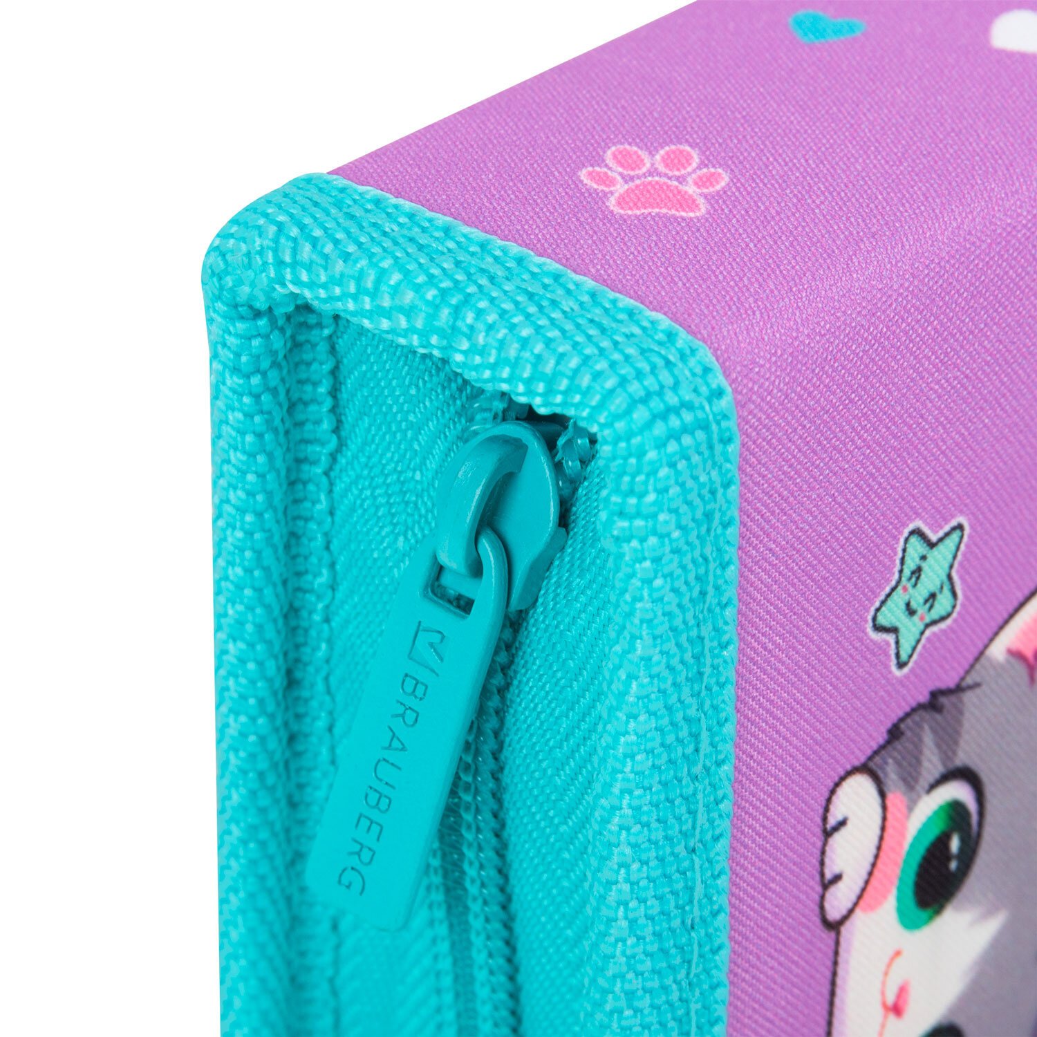 Пенал BRAUBERG, 1 отделение, 1 откидная планка, полиэстер, 21х14 см, Funny kittens, 273523
