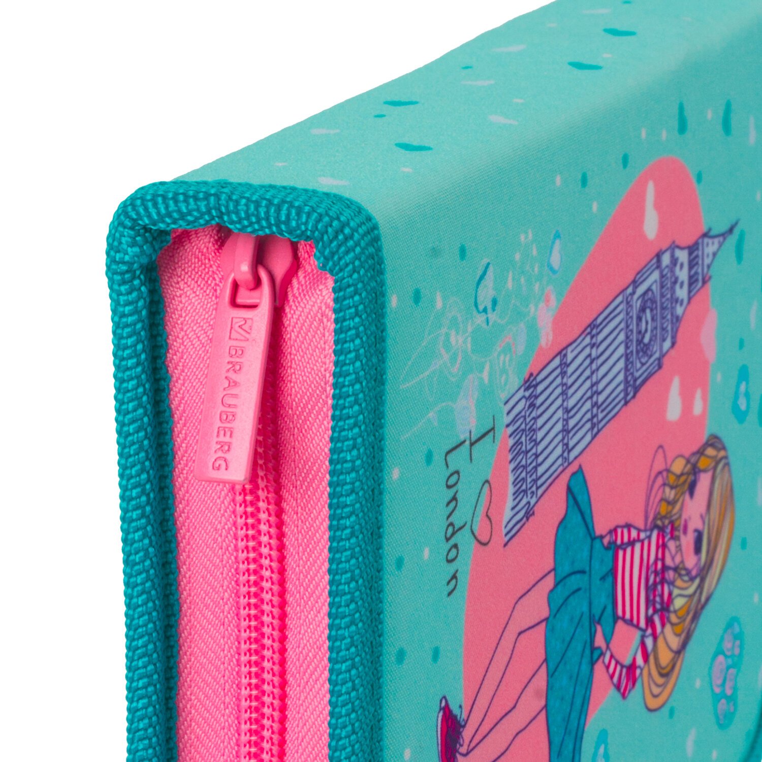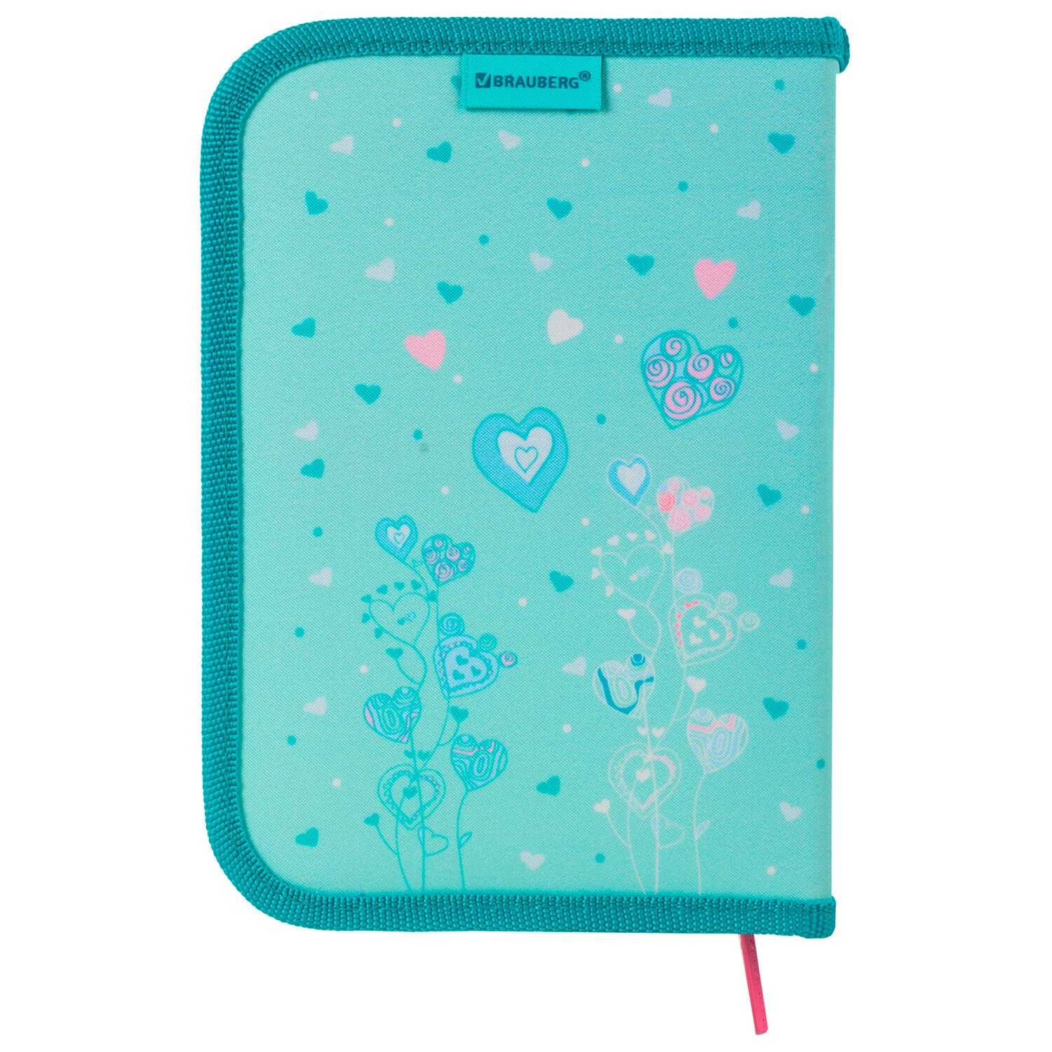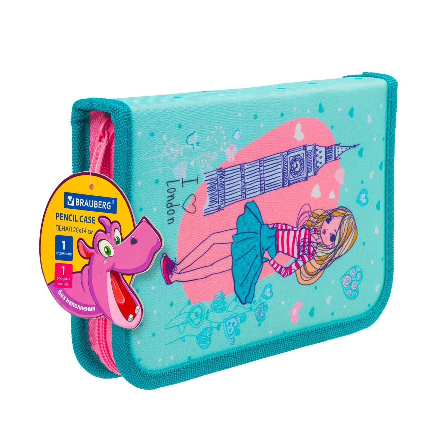 Пенал BRAUBERG, 1 отделение, 1 откидная планка, ткань, 20х14 см, "Girl", 229283