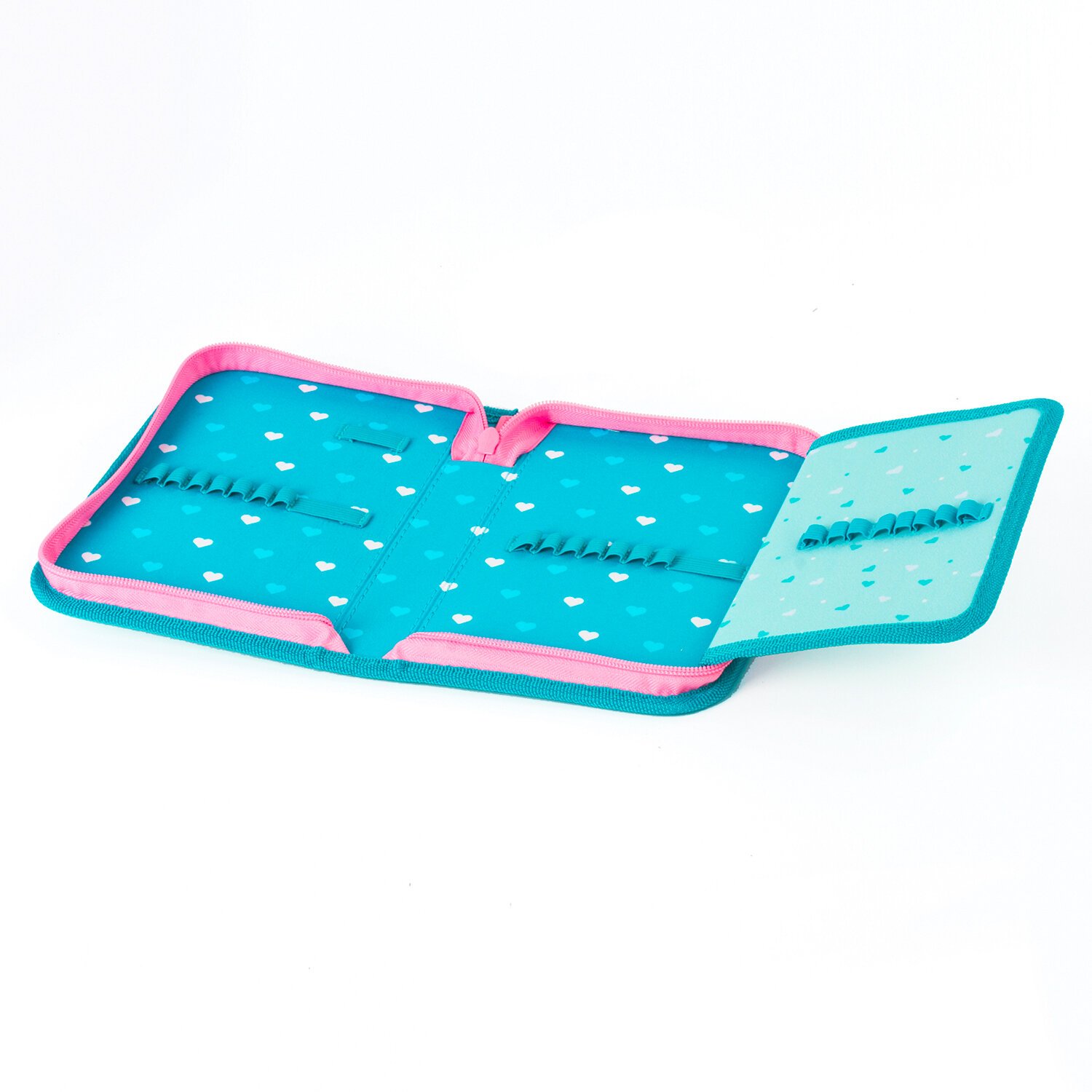 Пенал оснащен 1 основным отделением с откидной планкой. Вмещает до 25 предметов.