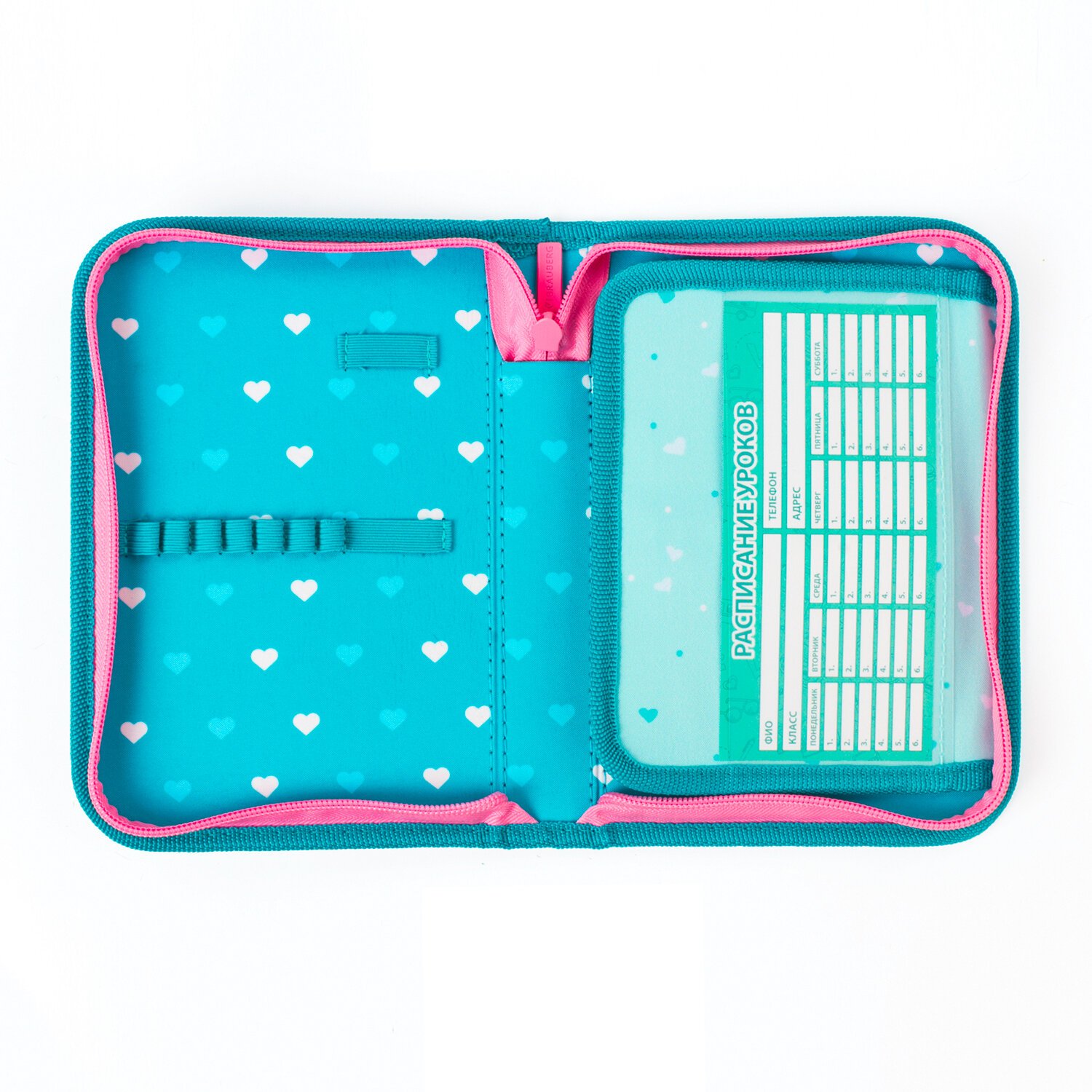 Материал снаружи и внутри – полиэстер с цветной печатью и ярким дизайном. Основа пенала – плотный картон. Такая конструкция отличается износостойкостью и прочностью, она поможет защитить канцелярские принадлежности от повреждений.