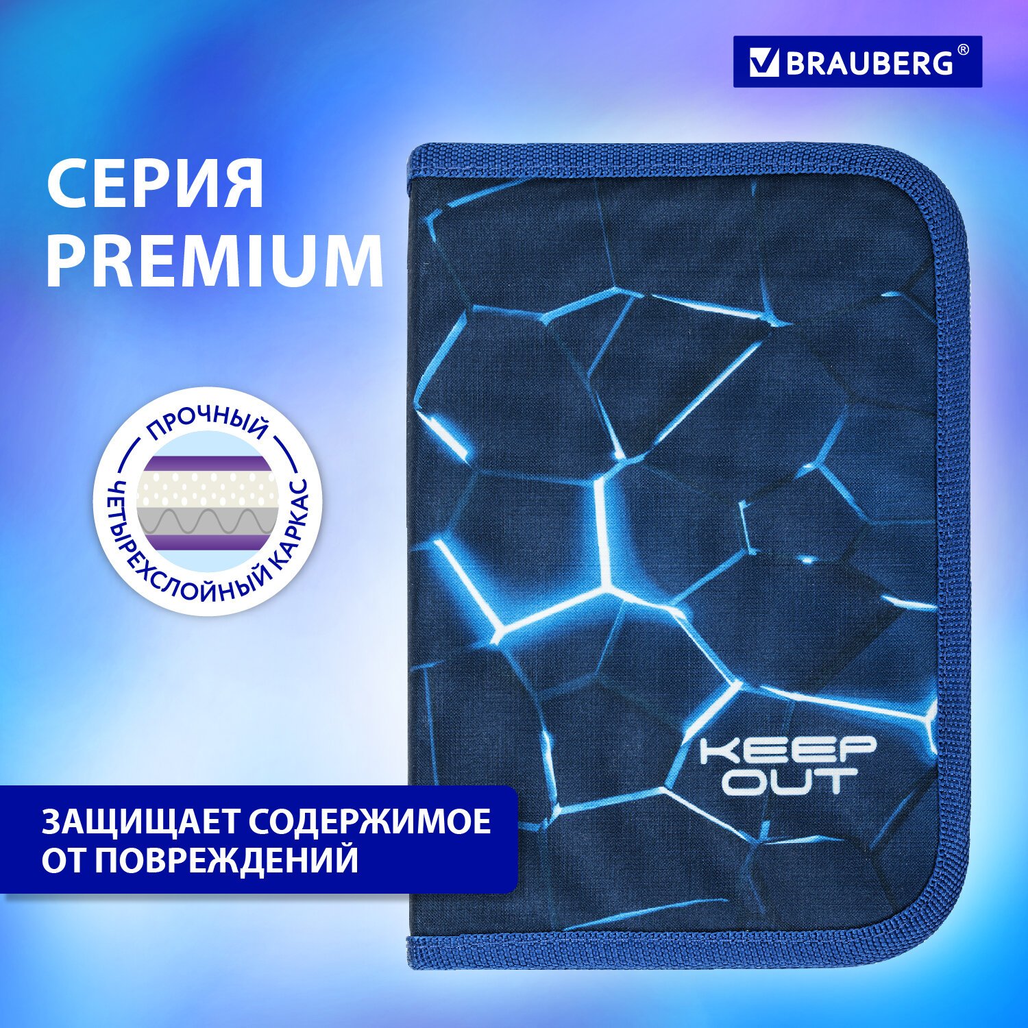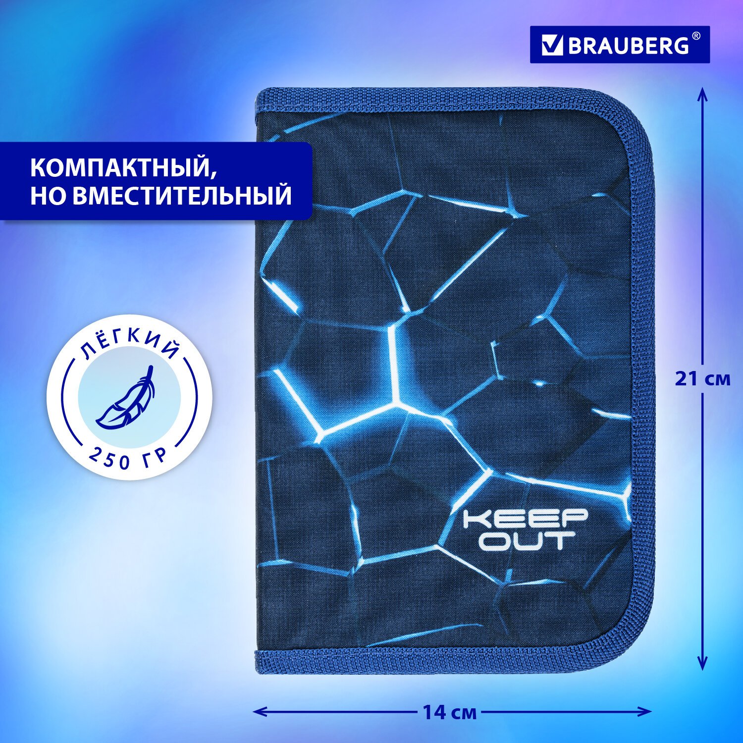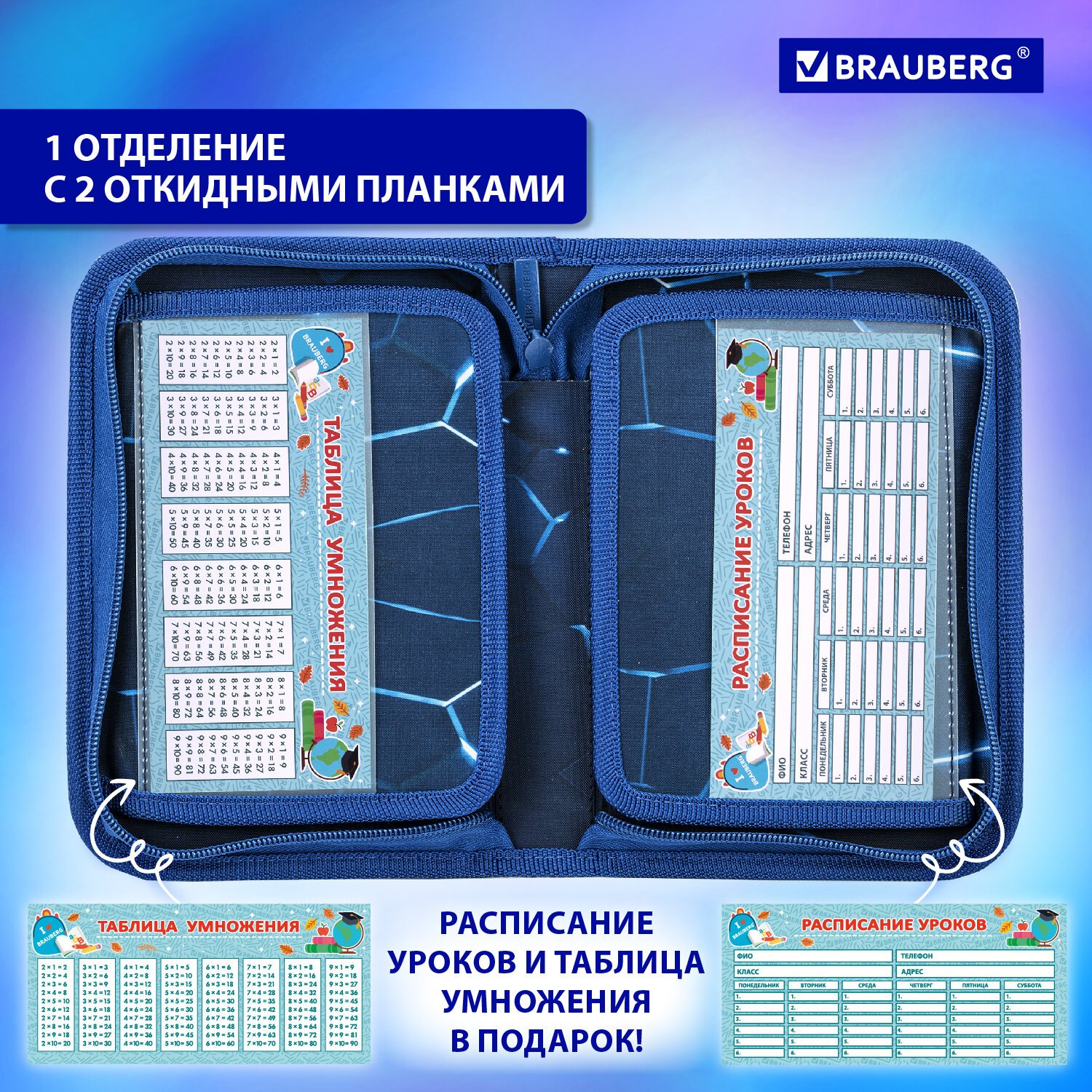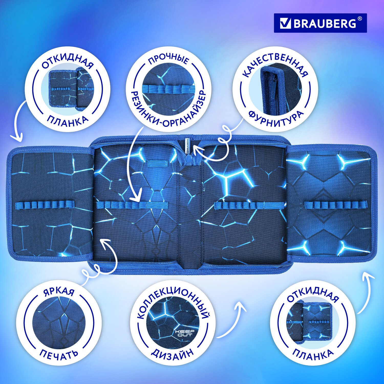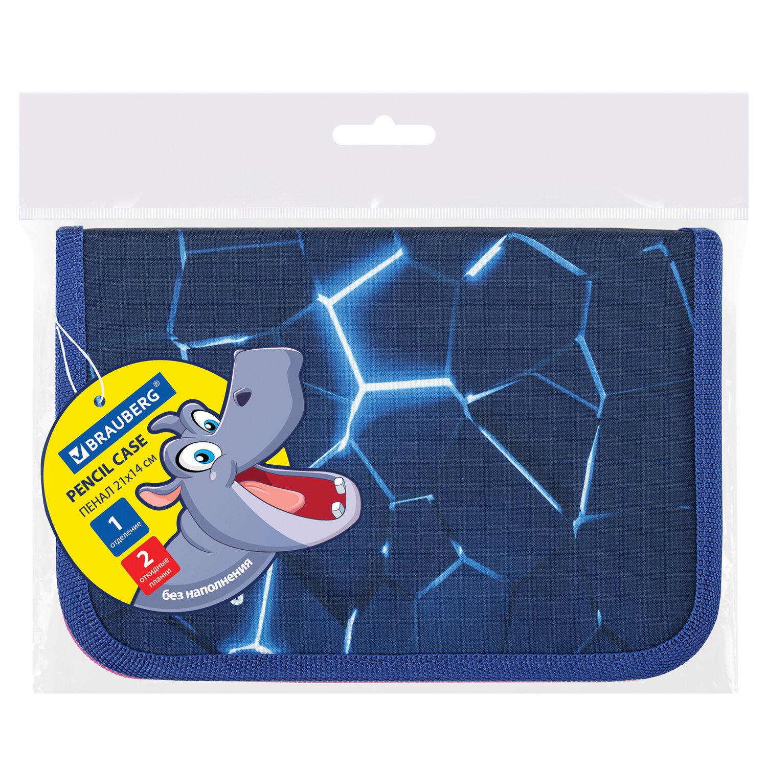 Пенал BRAUBERG, 1 отделение, 2 откидные планки, полиэстер, 21х14 см, Digital lava, 272320