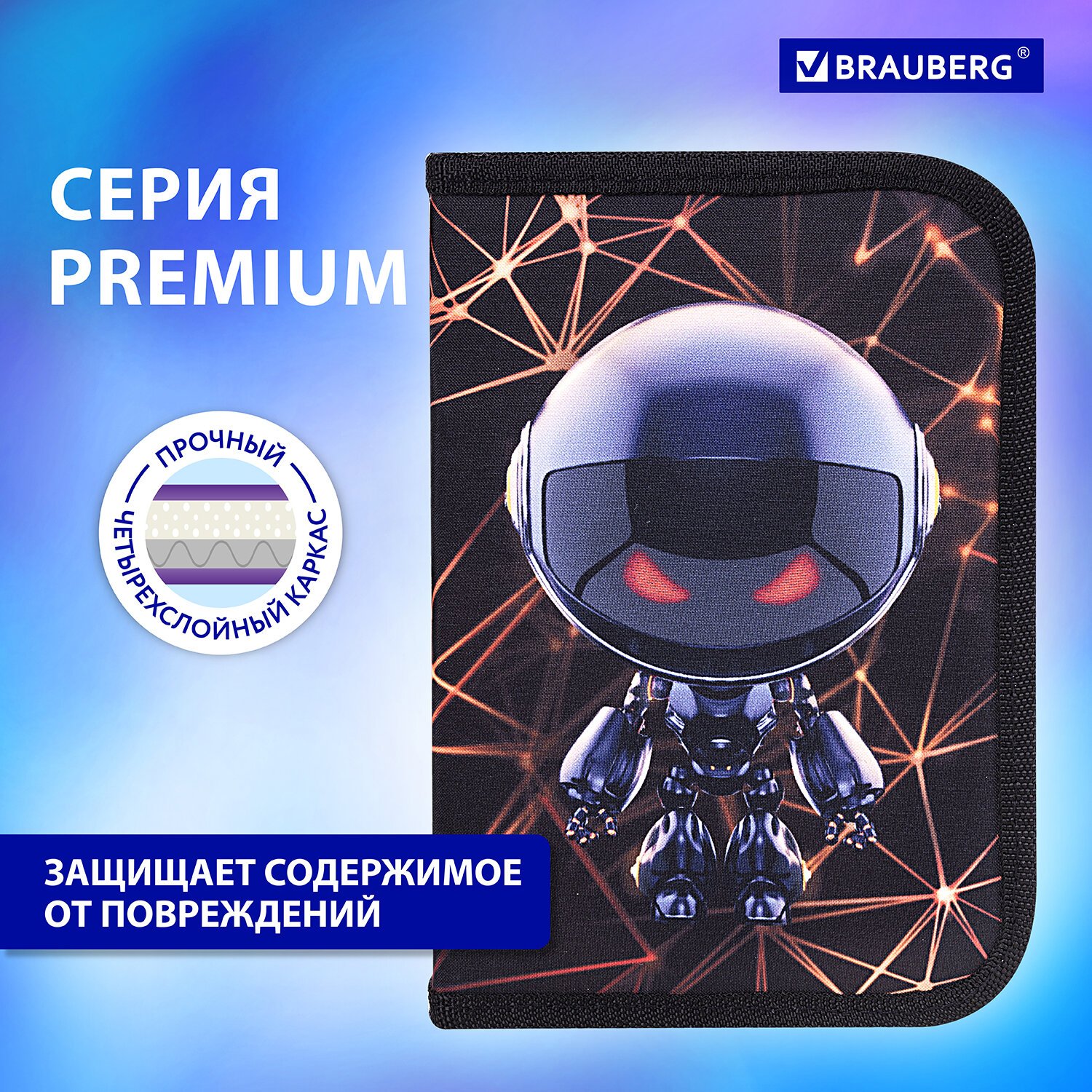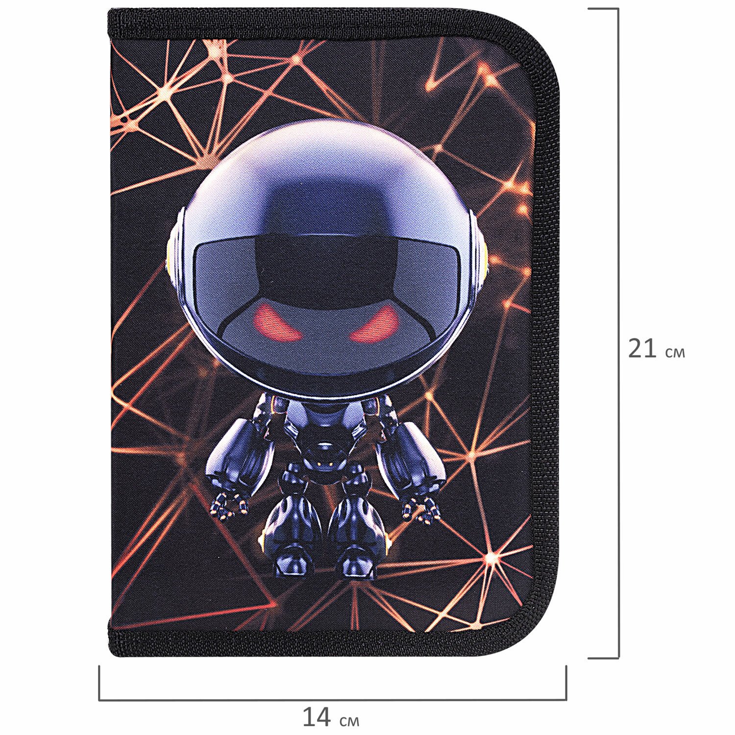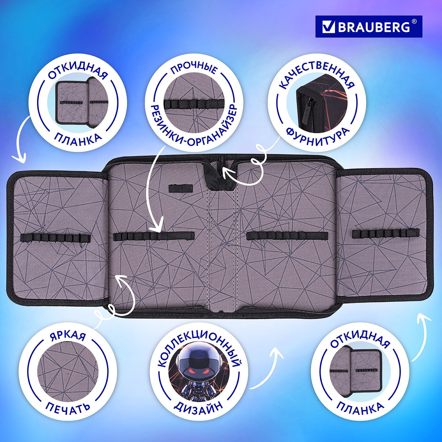 Пенал BRAUBERG, 1 отделение, 2 откидные планки, полиэстер, 21х14 см, "UFO", 271516
