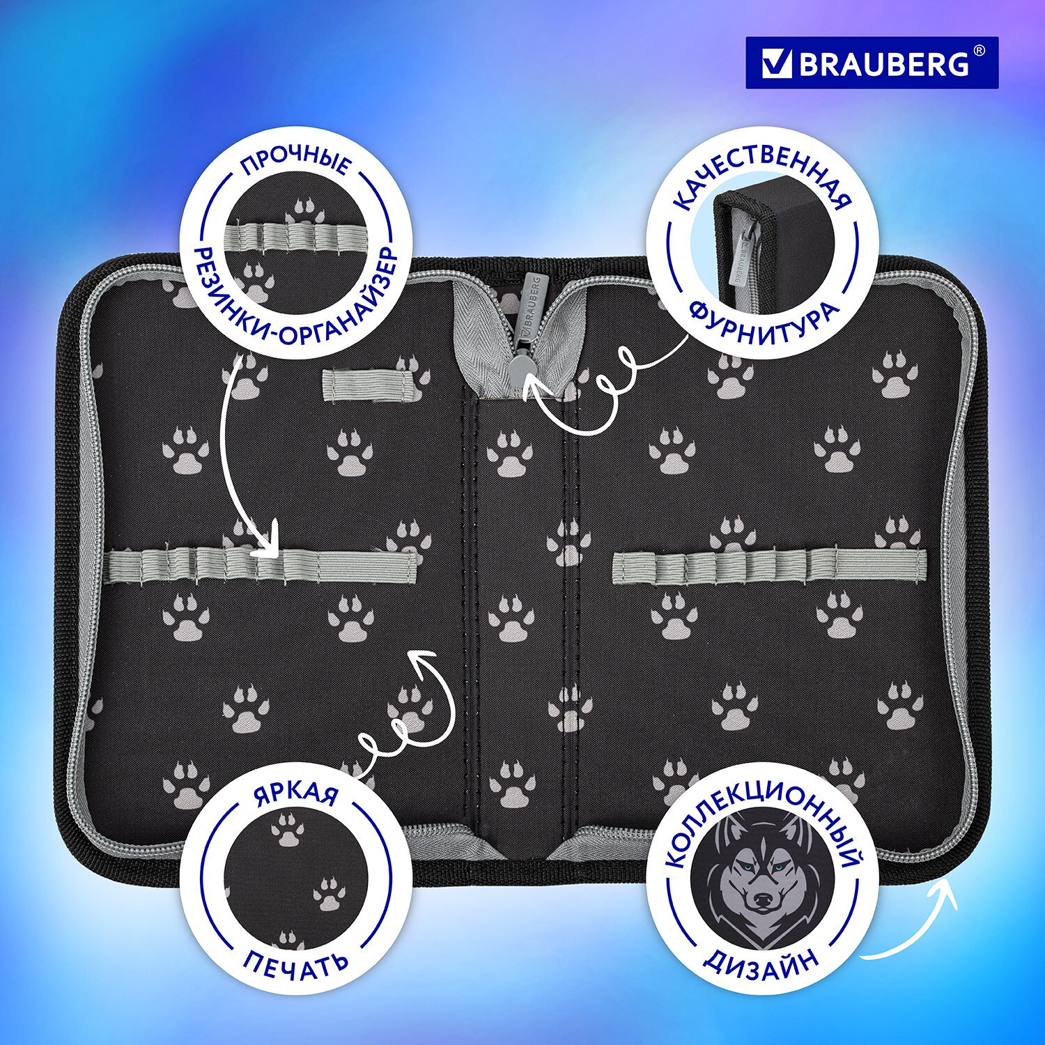 Пенал BRAUBERG, 1 отделение, полиэстер, 21х14 см, "Husky", 271532