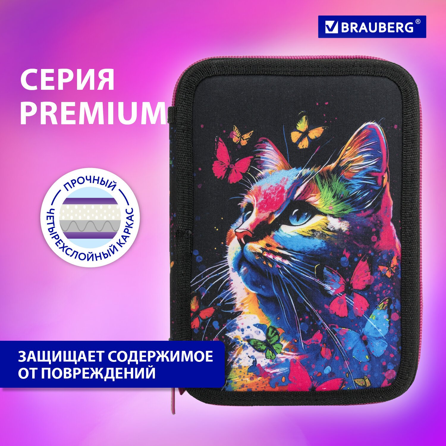 Пенал BRAUBERG, 2 отделения, полиэстер, 21х14 см, "Butterfly catcher", 272330