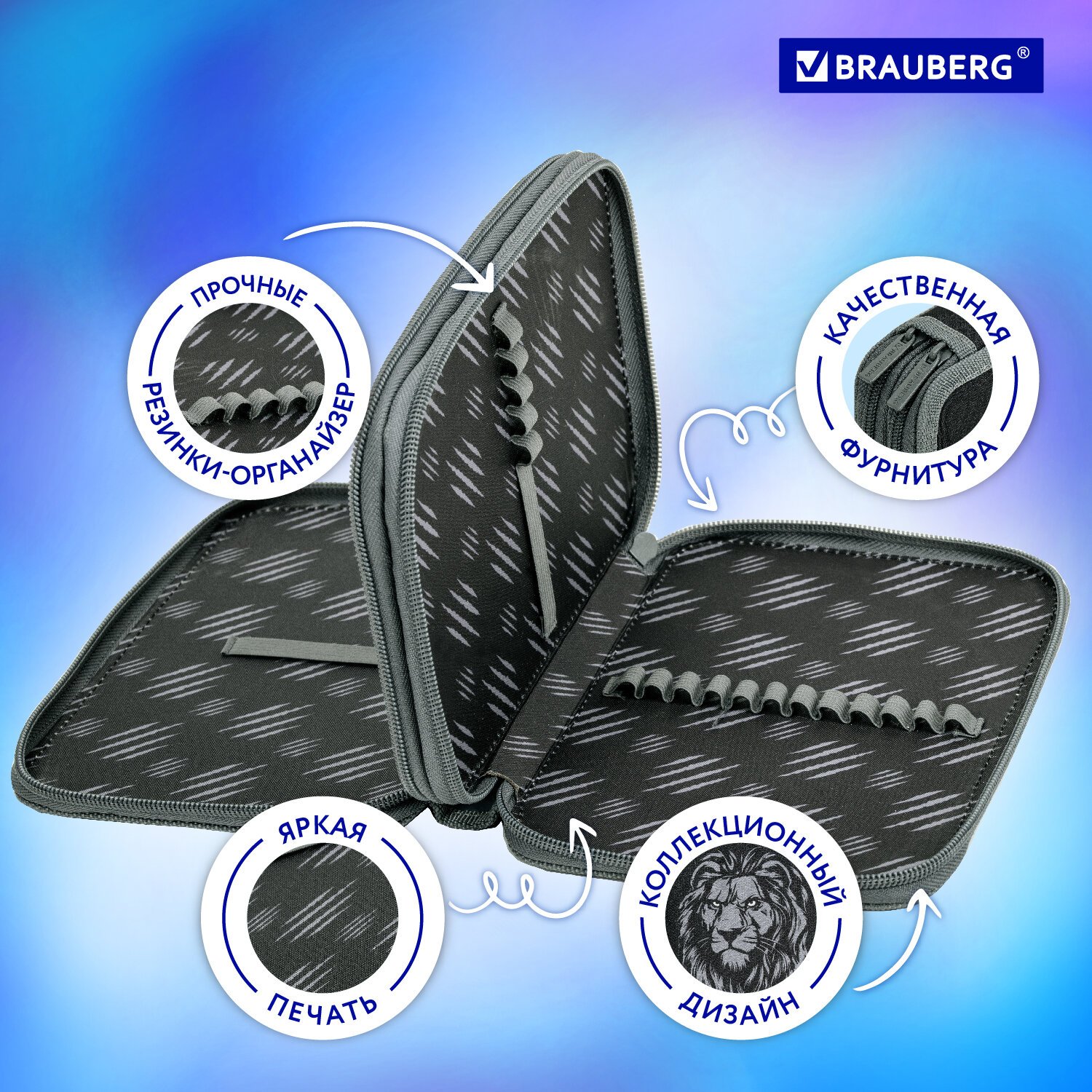 Пенал BRAUBERG, 2 отделения, полиэстер, 21х14 см, "Savage lion", 272331