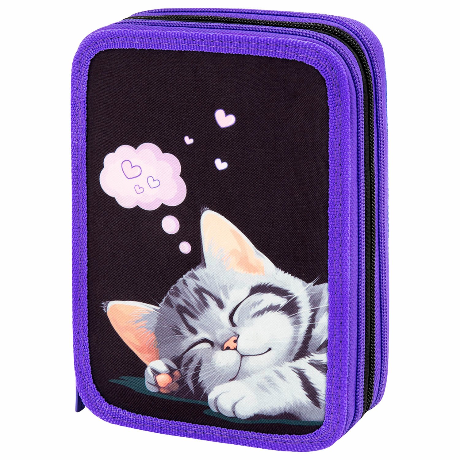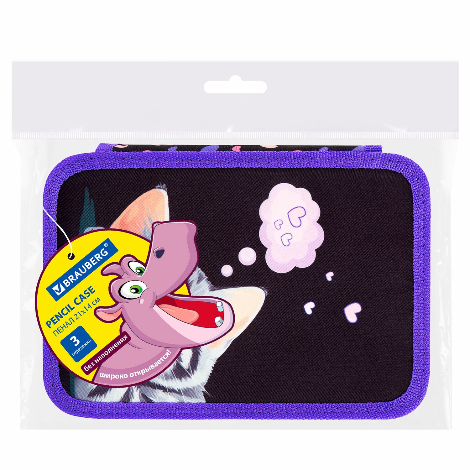 Пенал BRAUBERG, 3 отделения, полиэстер, 21х14 см, Sleeping kitten, 273538