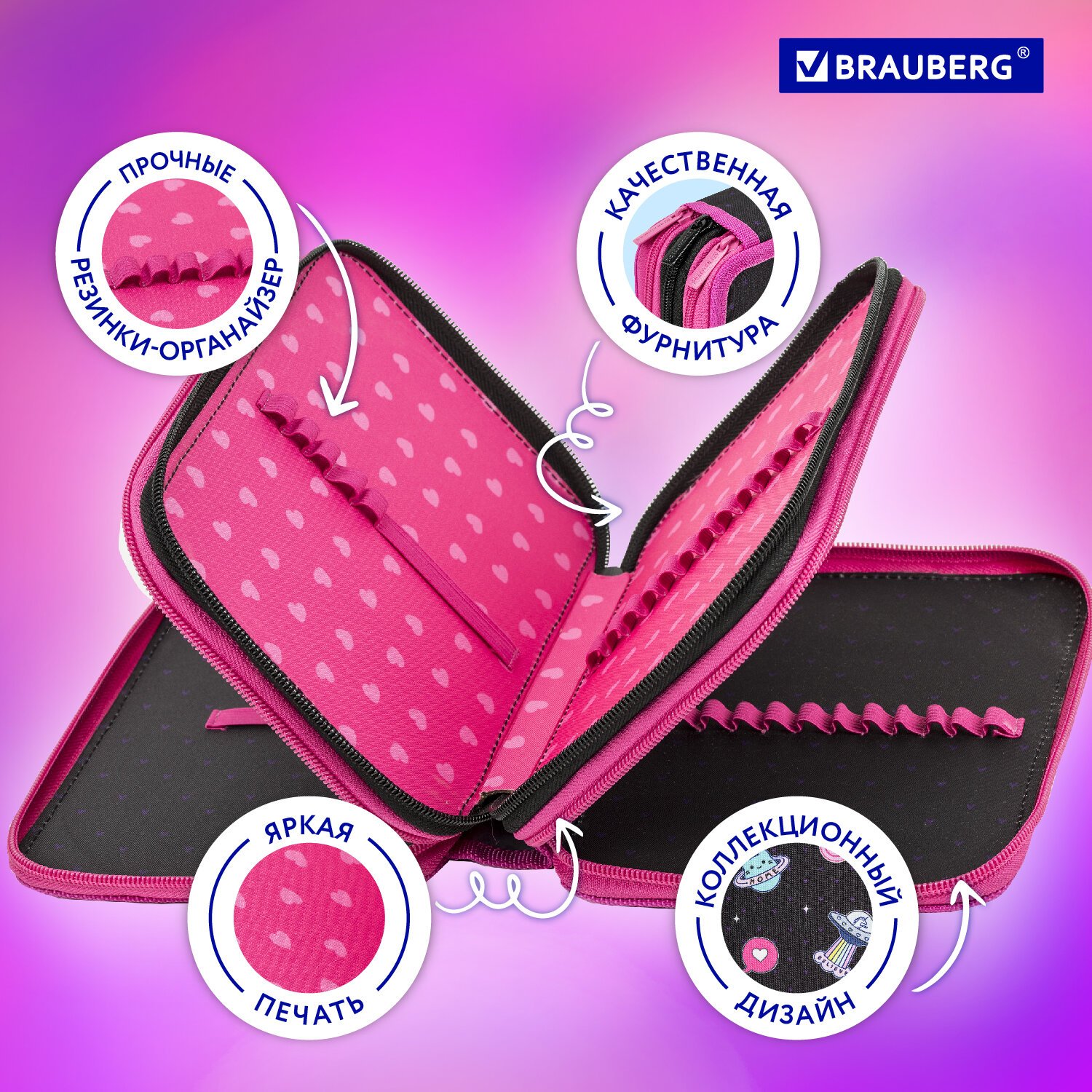 Пенал BRAUBERG, 3 отделения, полиэстер, 21х14 см, "Space sweets", 272332