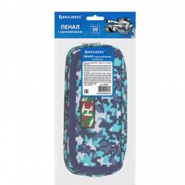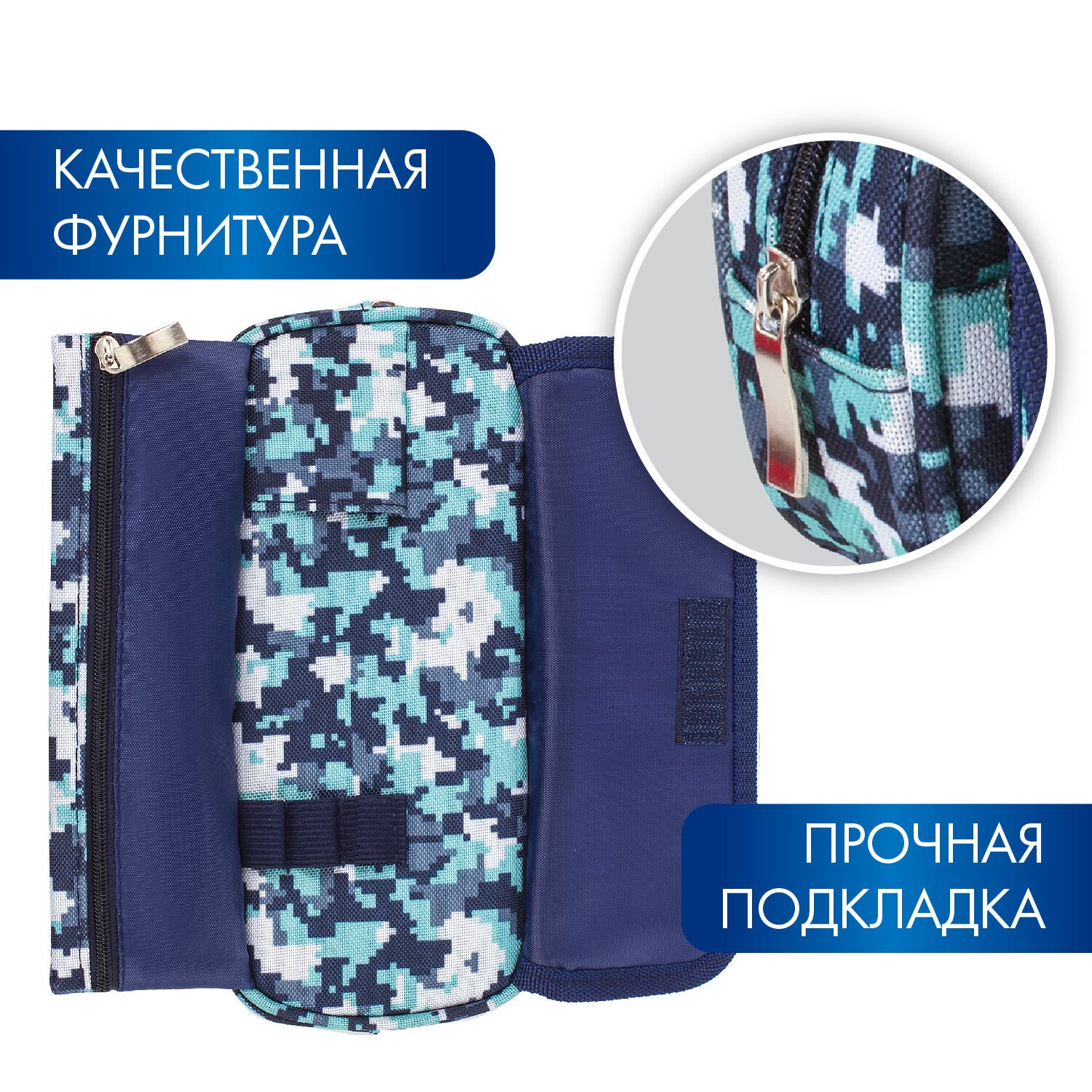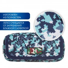 Пенал BRAUBERG для мальчиков, 1 отделение, органайзер, мягкий, "Military", синий, 21х5х9 см, 228991