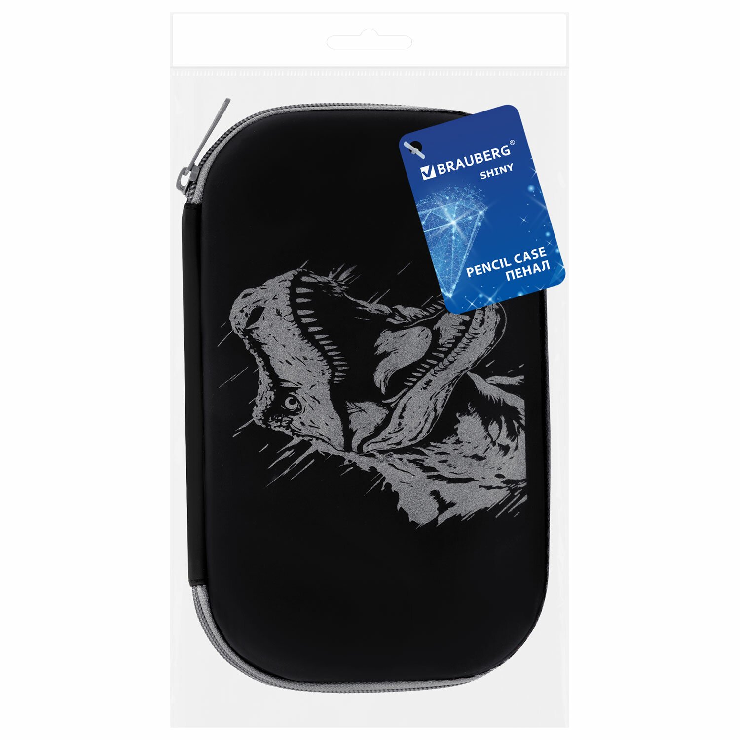 Пенал BRAUBERG SHINY, 1 отделение, 1 откидная планка, EVA, 22х13 см, Scary dino, 273517