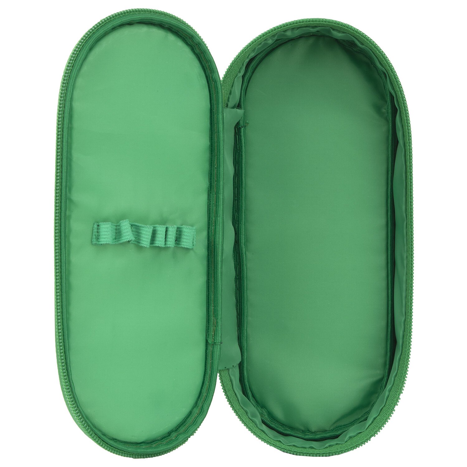 Выполнен из прочного материала, внутри пенала подкладка из полиэстера. Размер – 21х9х5 см. Имеет одно вместительное отделение и органайзер для канцелярских принадлежностей. Застежка-молния с металлическим бегунком.