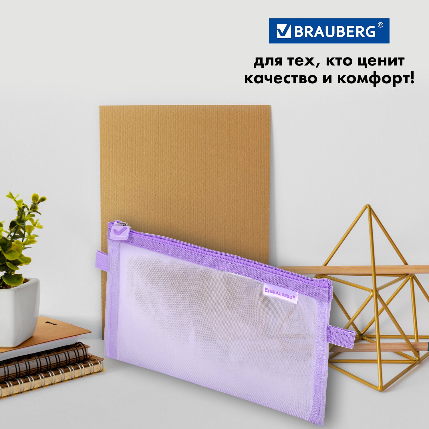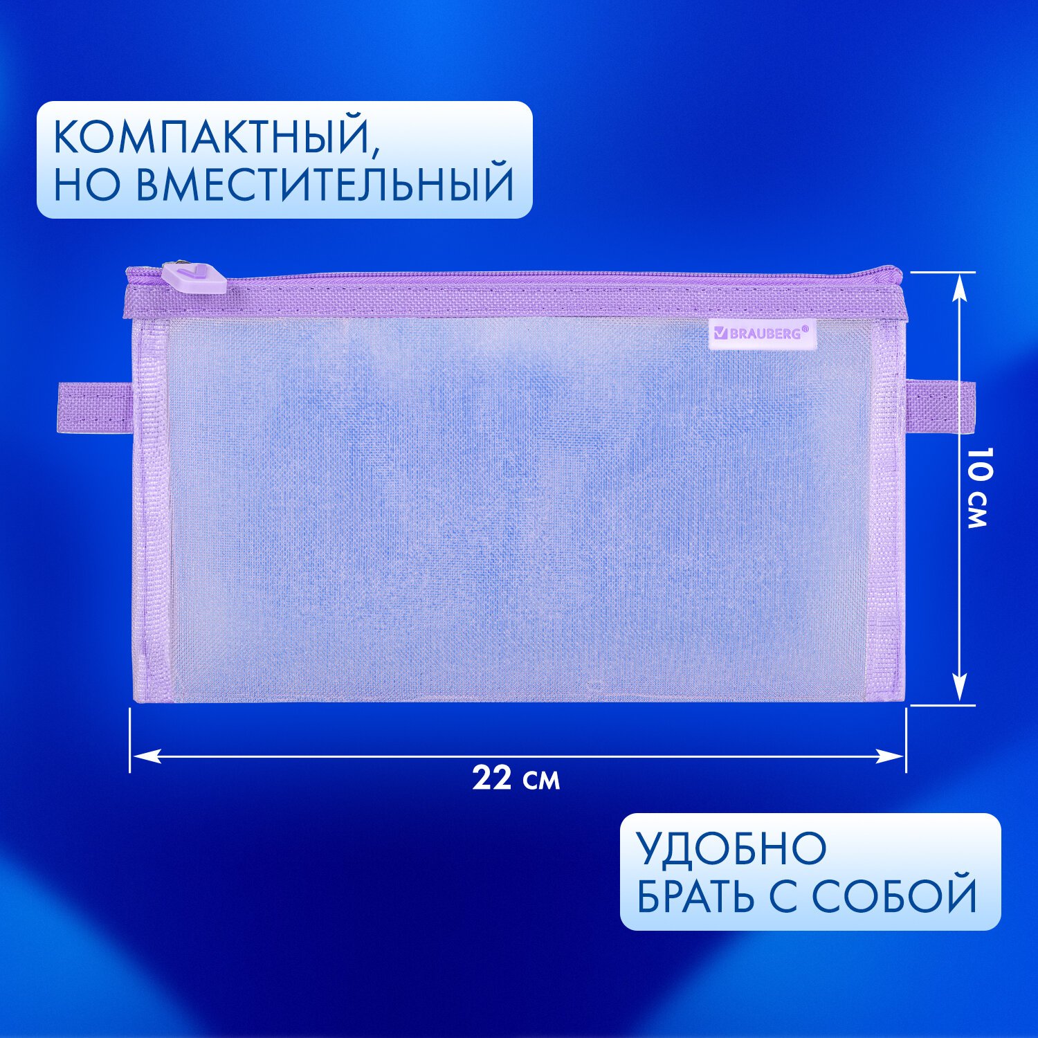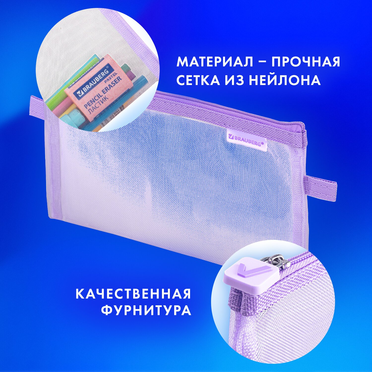 Пенал-конверт BRAUBERG, сетка, 22x10 см, фиолетовый, 272239