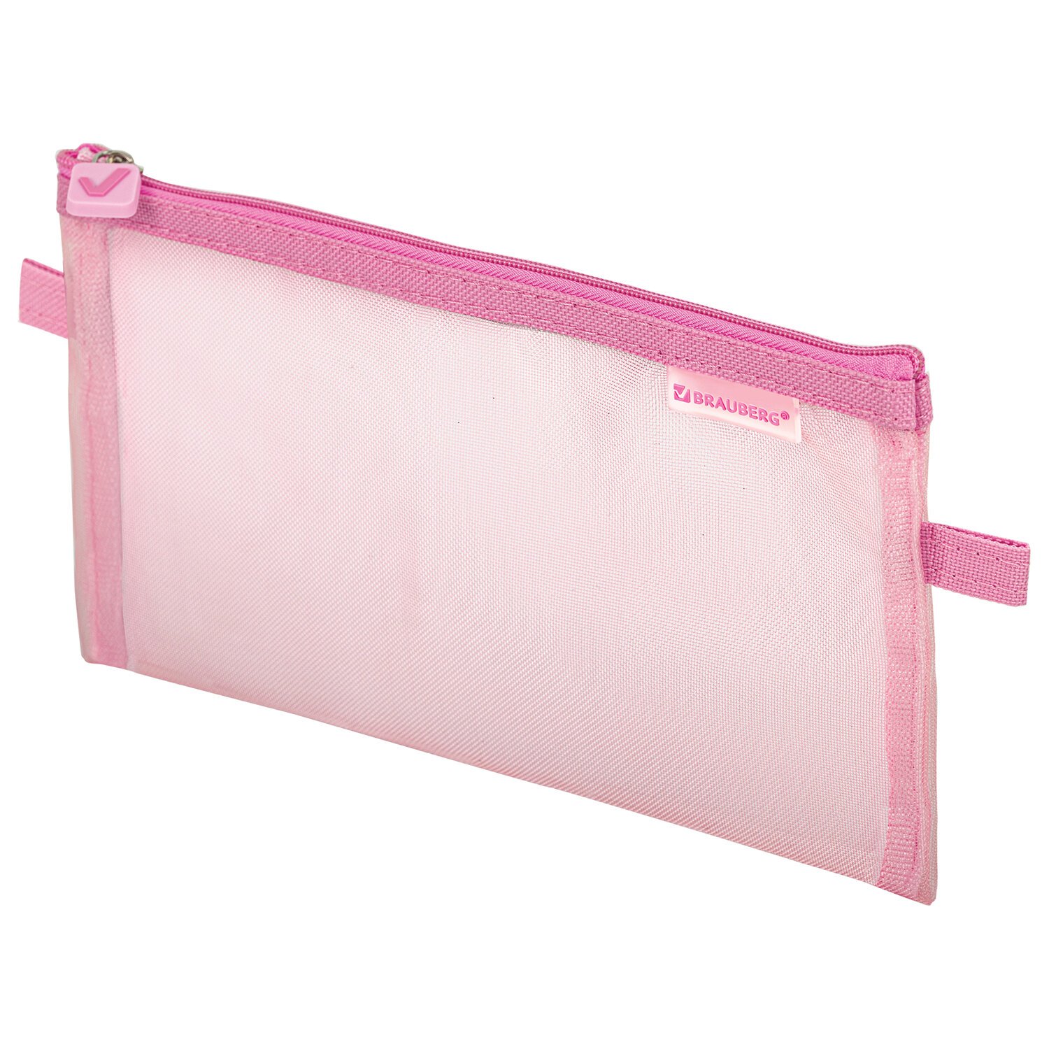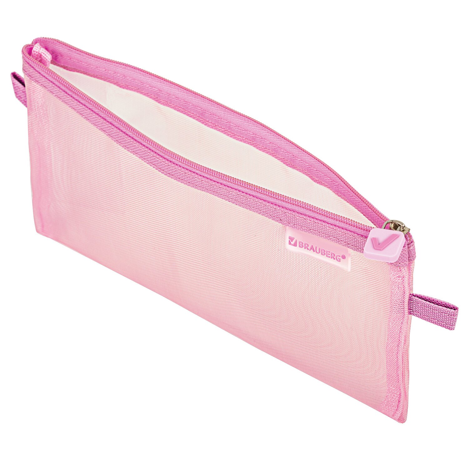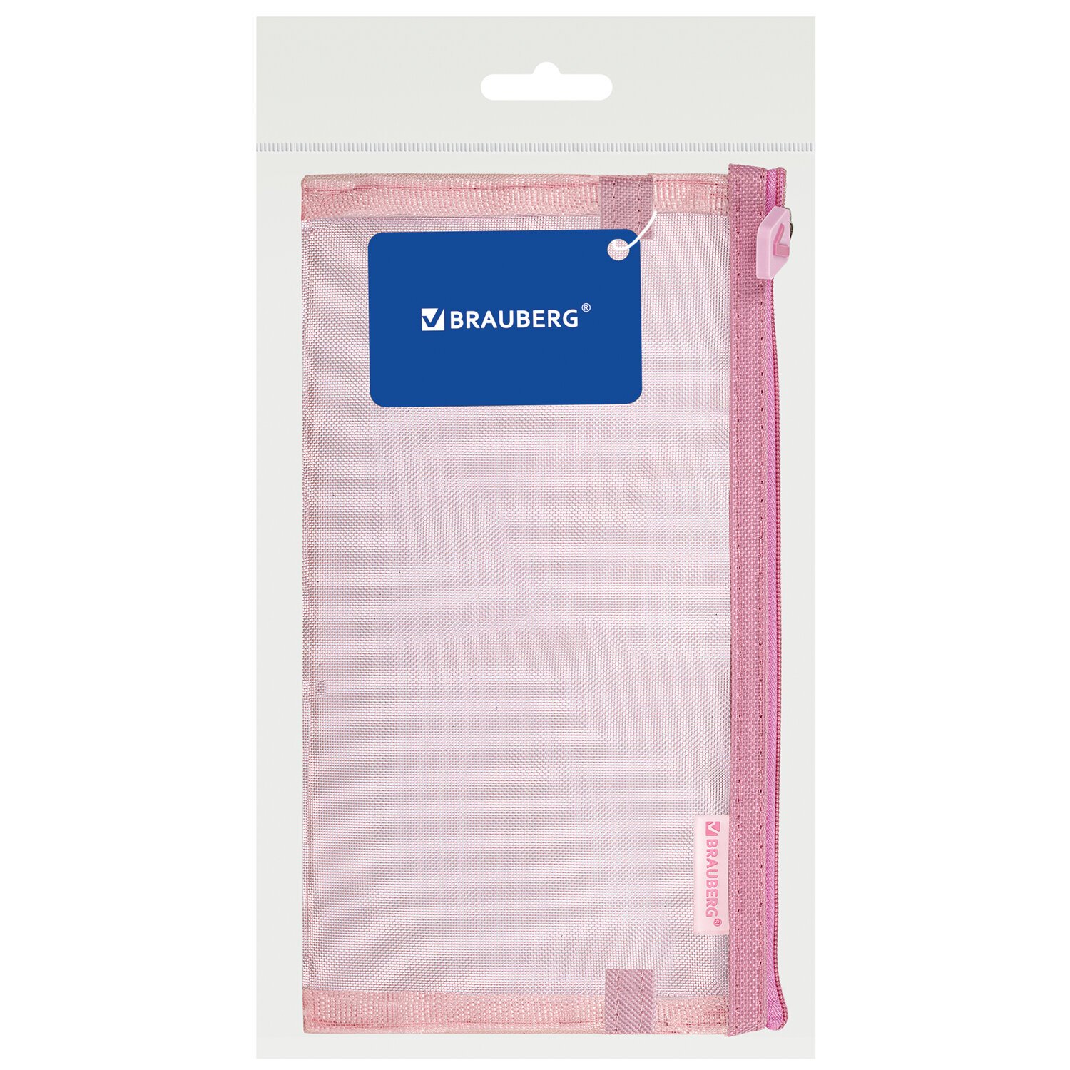 Пенал-конверт BRAUBERG, сетка, 22x10 см, розовый, 272238