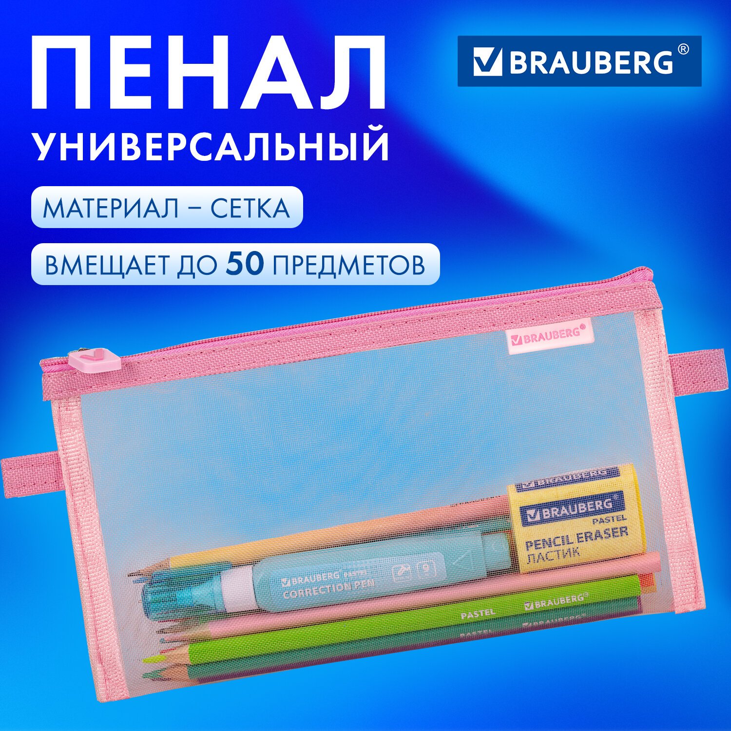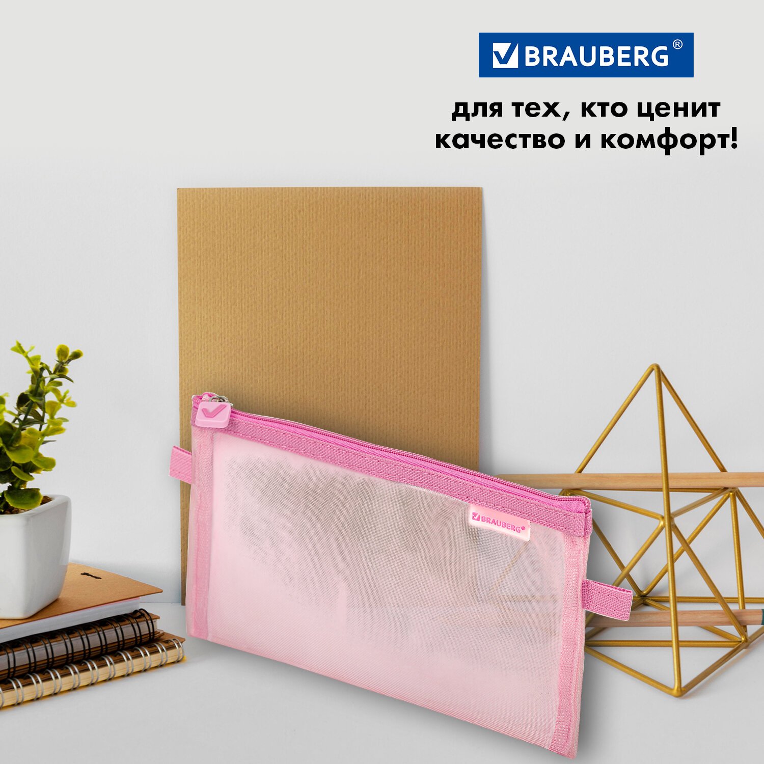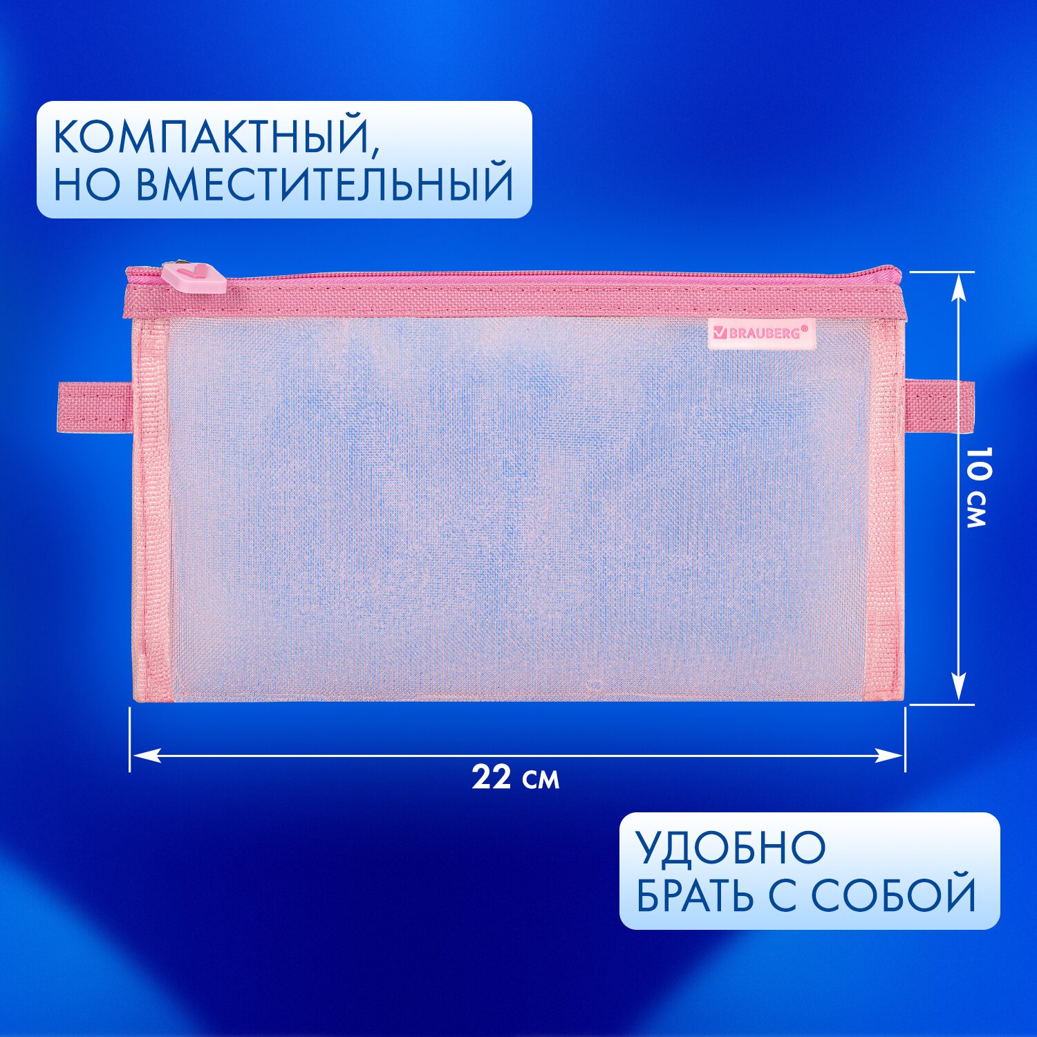 Пенал-конверт BRAUBERG, сетка, 22x10 см, розовый, 272238