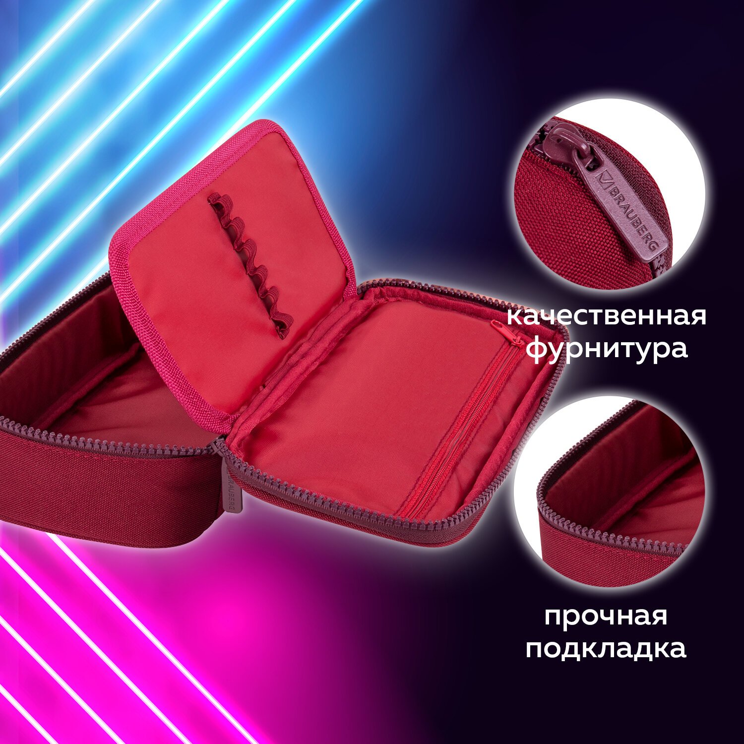 Пенал-косметичка BRAUBERG, 1 отделение, органайзер, полиэстер, 22x11,5x6 см, винный, 270845