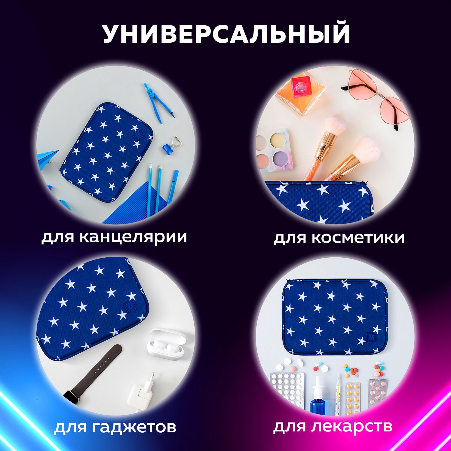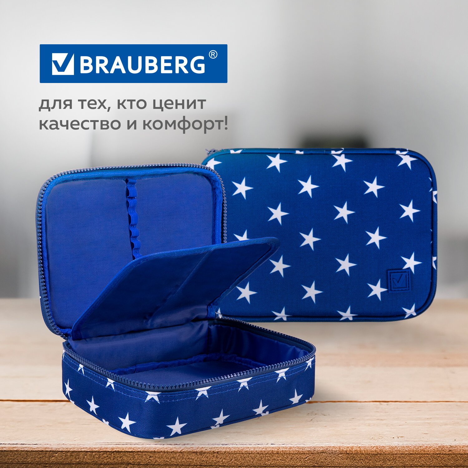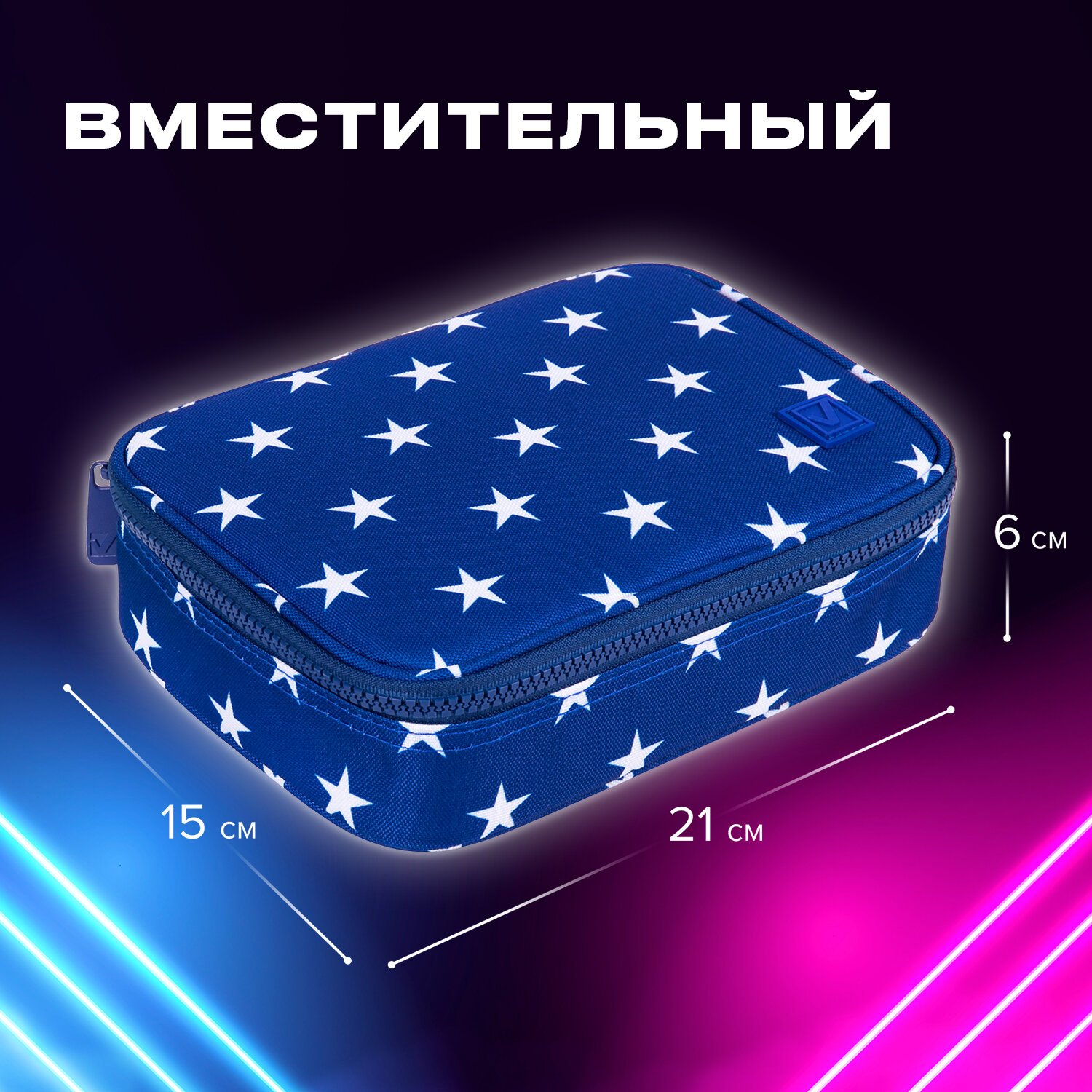 Пенал-косметичка BRAUBERG БОЛЬШОЙ, 1 отделение, 1 откидная планка, ткань, 21x15x6 см, "Stars", 270707
