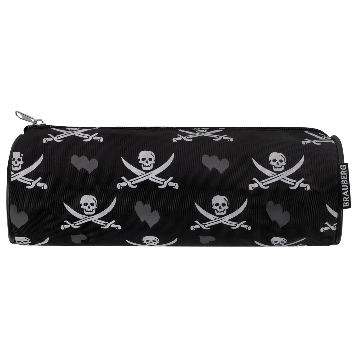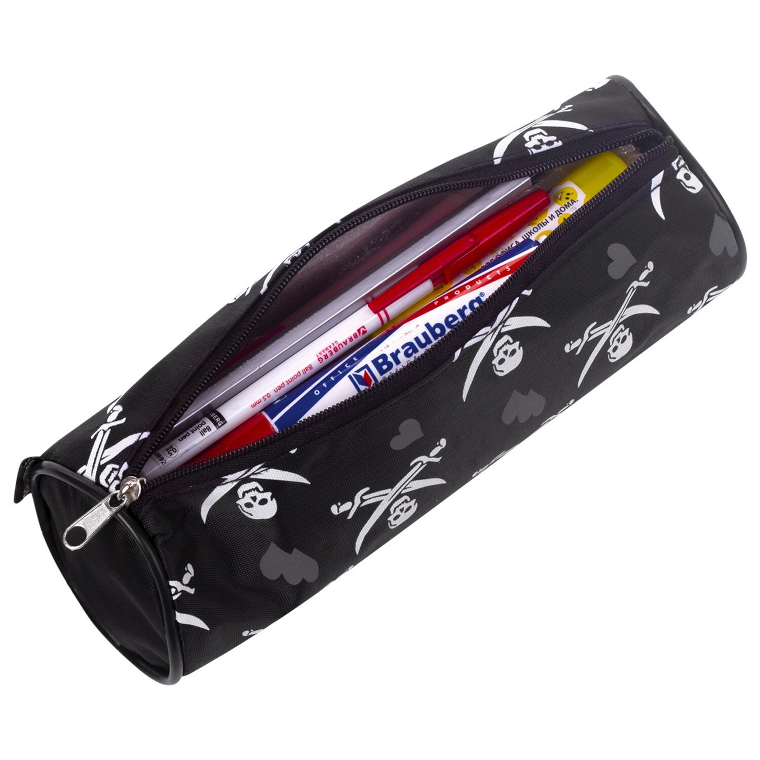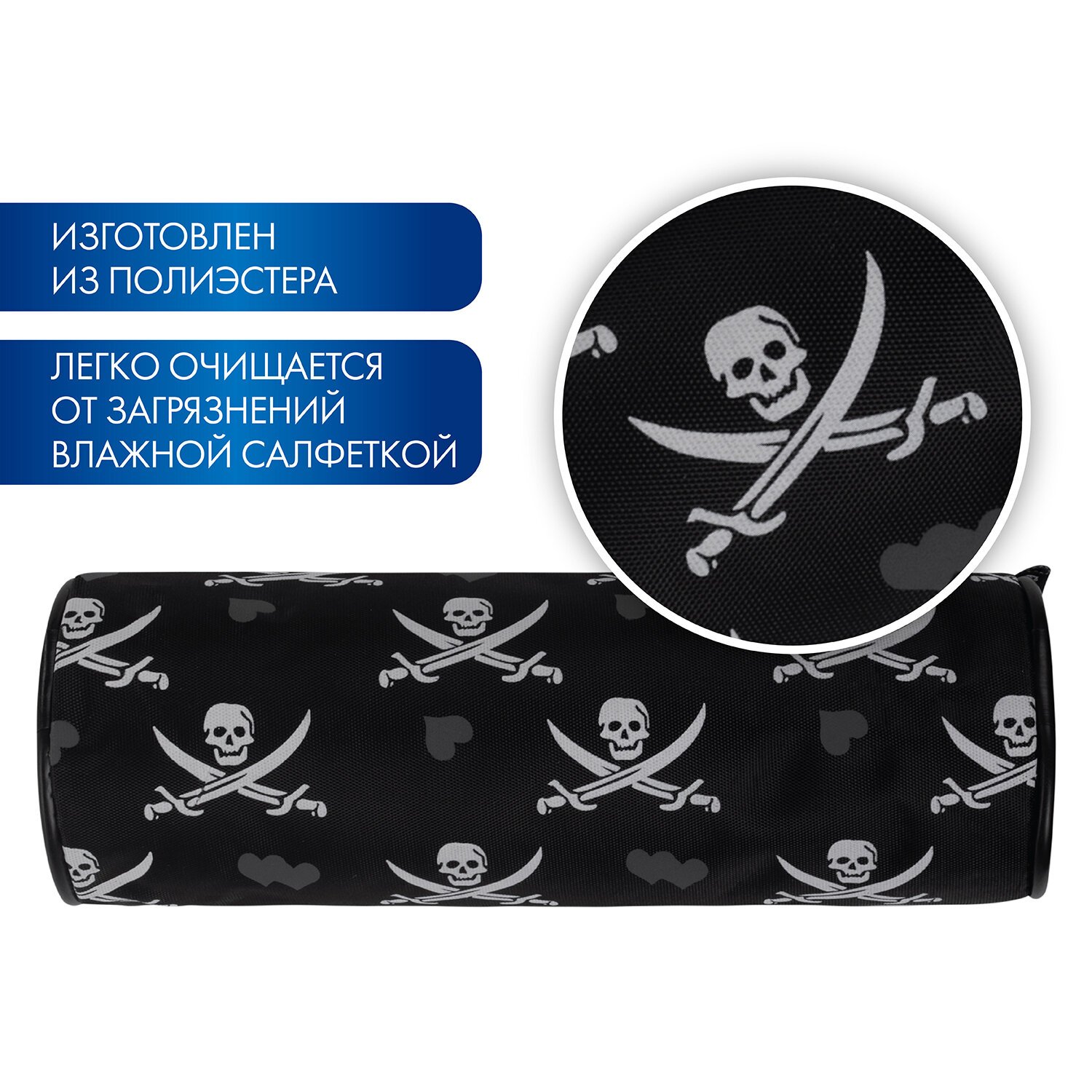 Пенал-косметичка BRAUBERG для учеников начальной школы, черный, "Пираты", 20х7х7 см, 223273