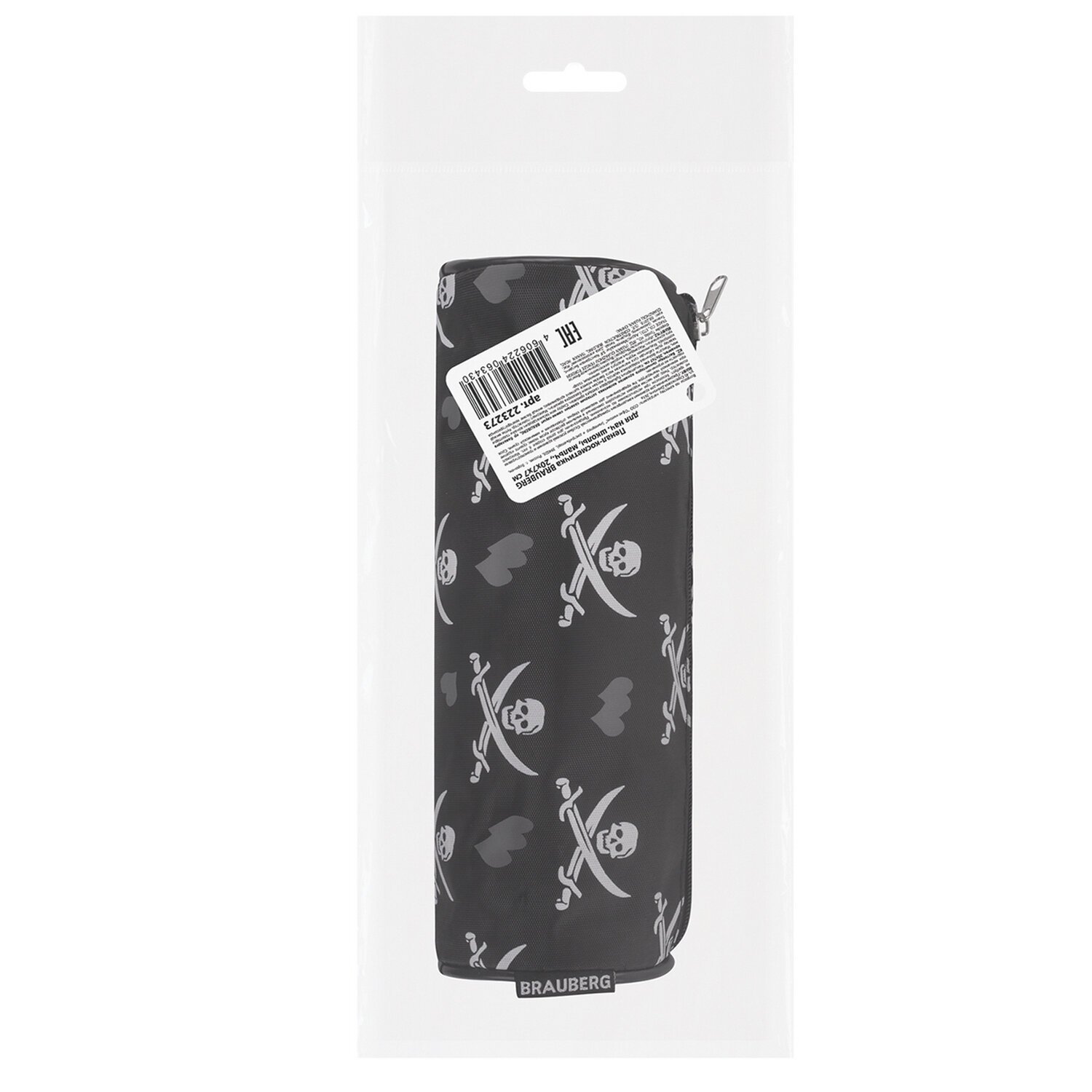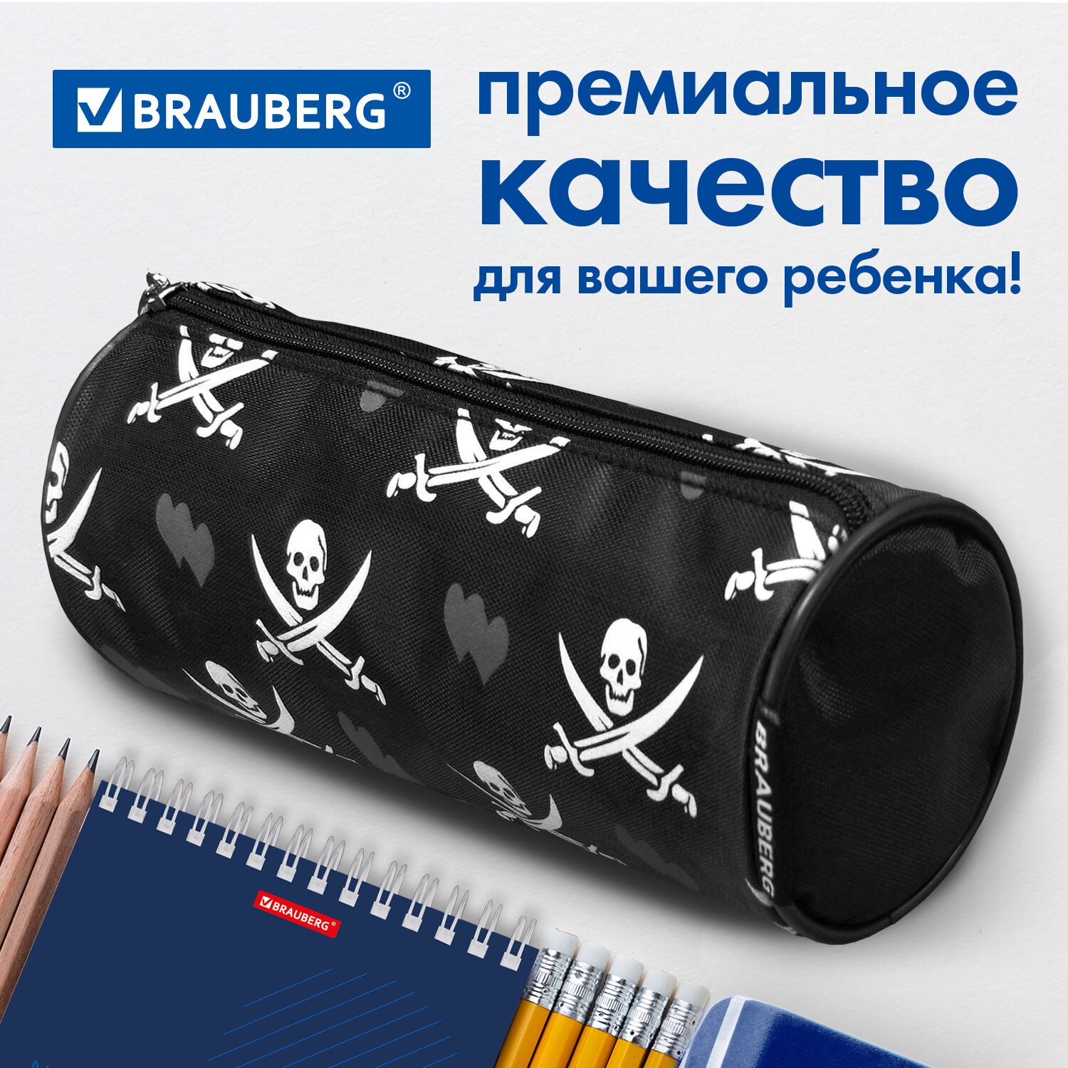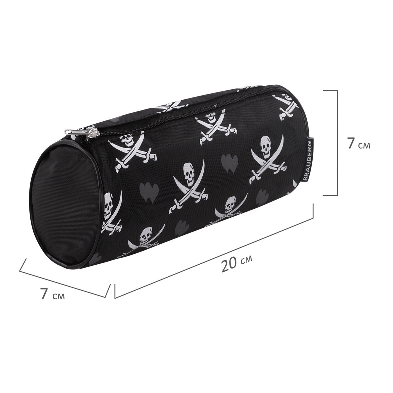Пенал-косметичка BRAUBERG для учеников начальной школы, черный, "Пираты", 20х7х7 см, 223273