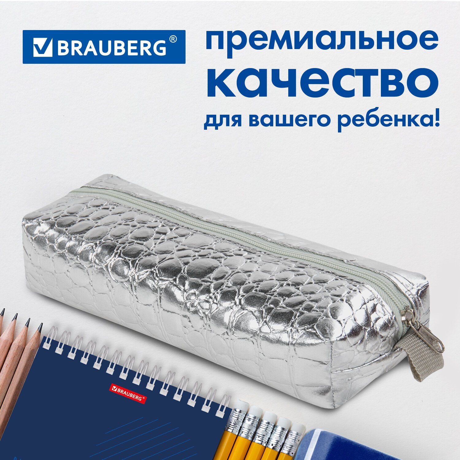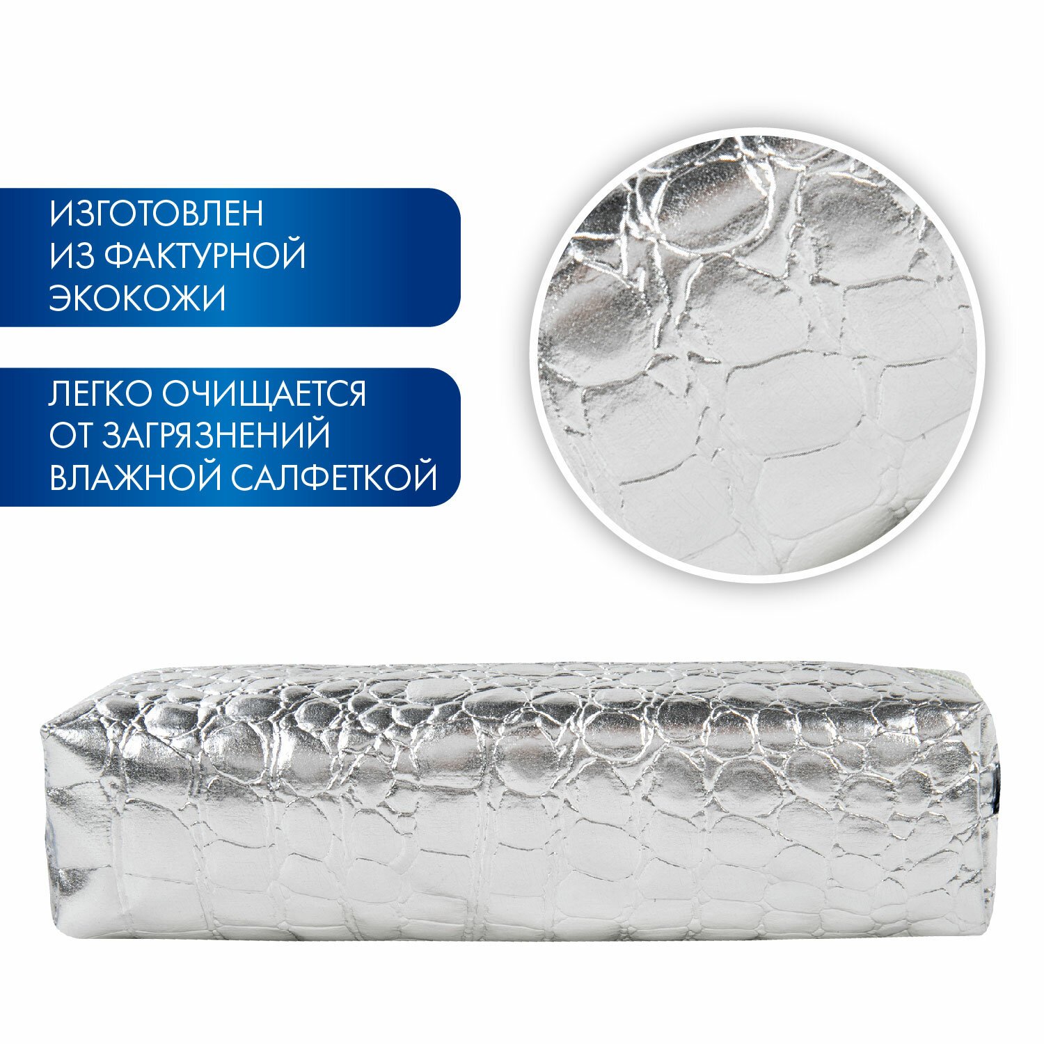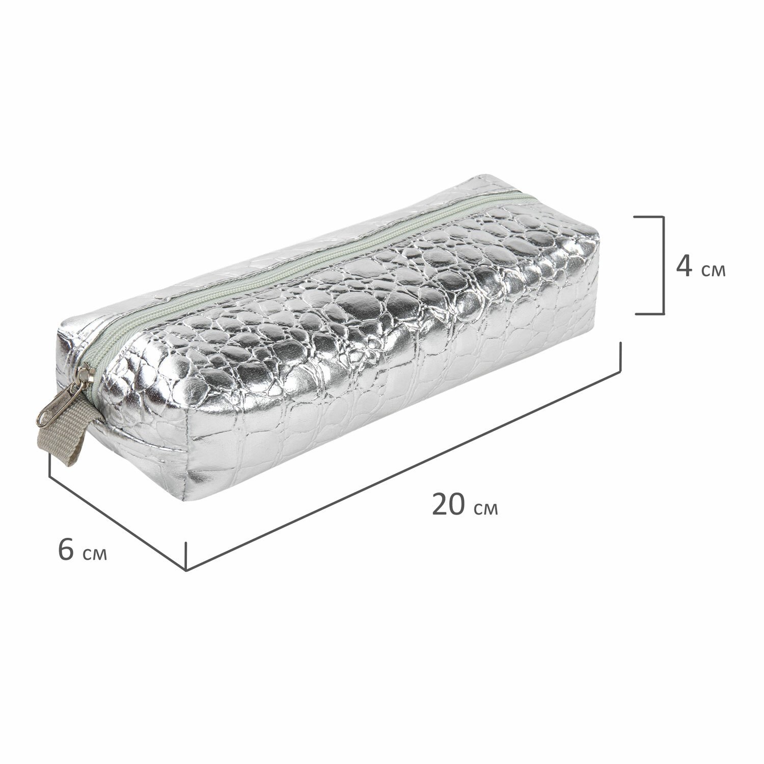 Пенал-косметичка BRAUBERG, "крокодиловая кожа", 20х6х4 см, "Ultra silver", 270851