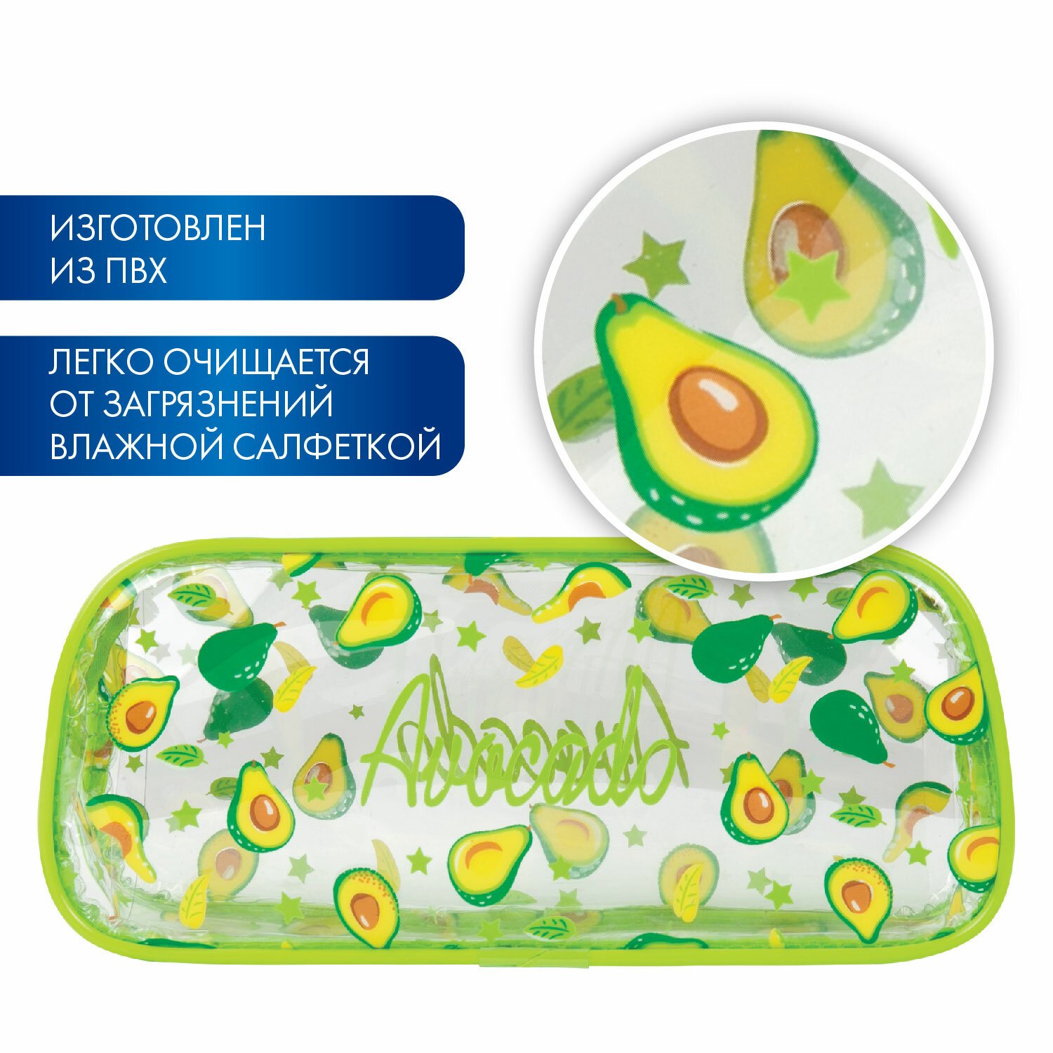 Пенал-косметичка BRAUBERG LUCENT на молнии, прозрачный, "Avocado", 21х5х9 см, 270054