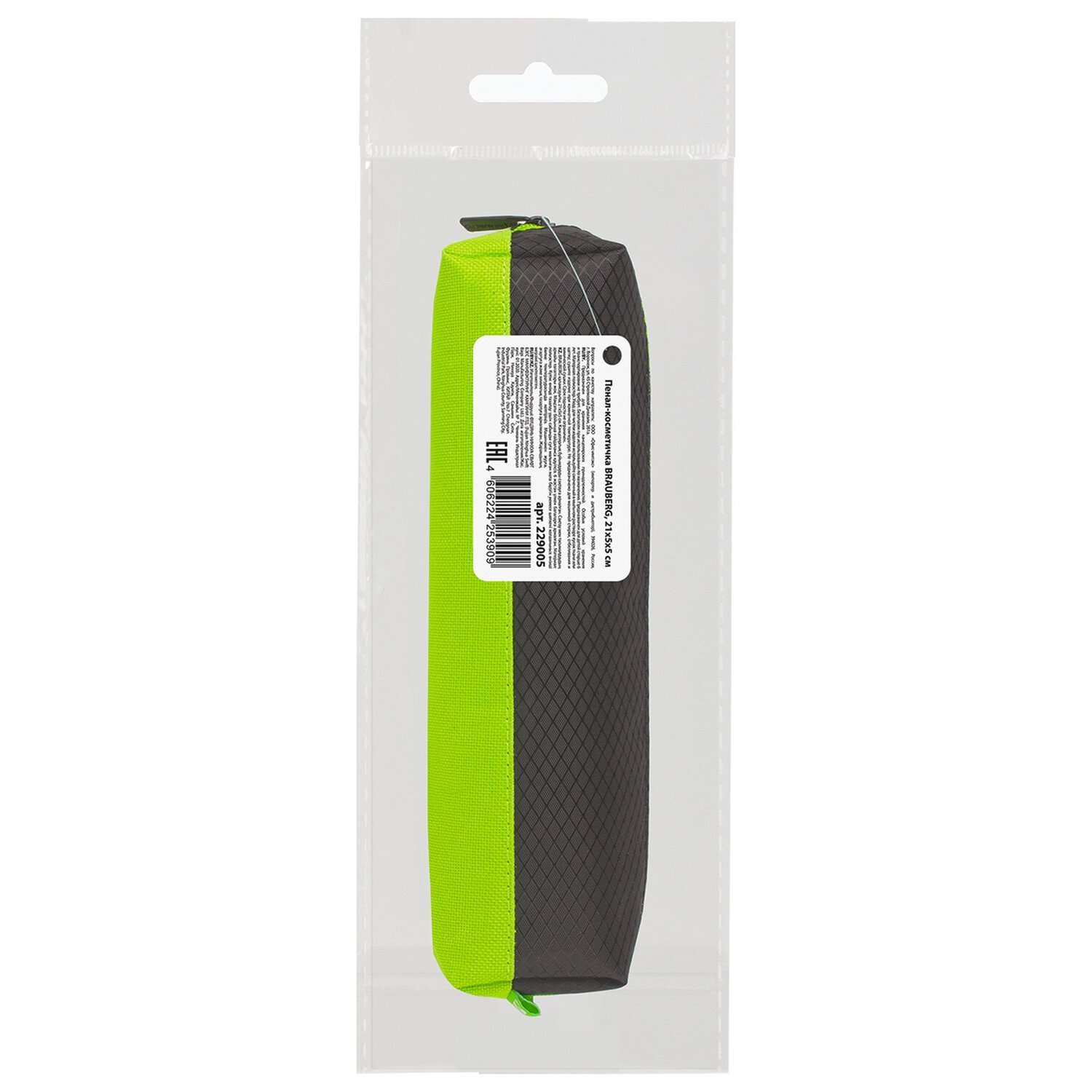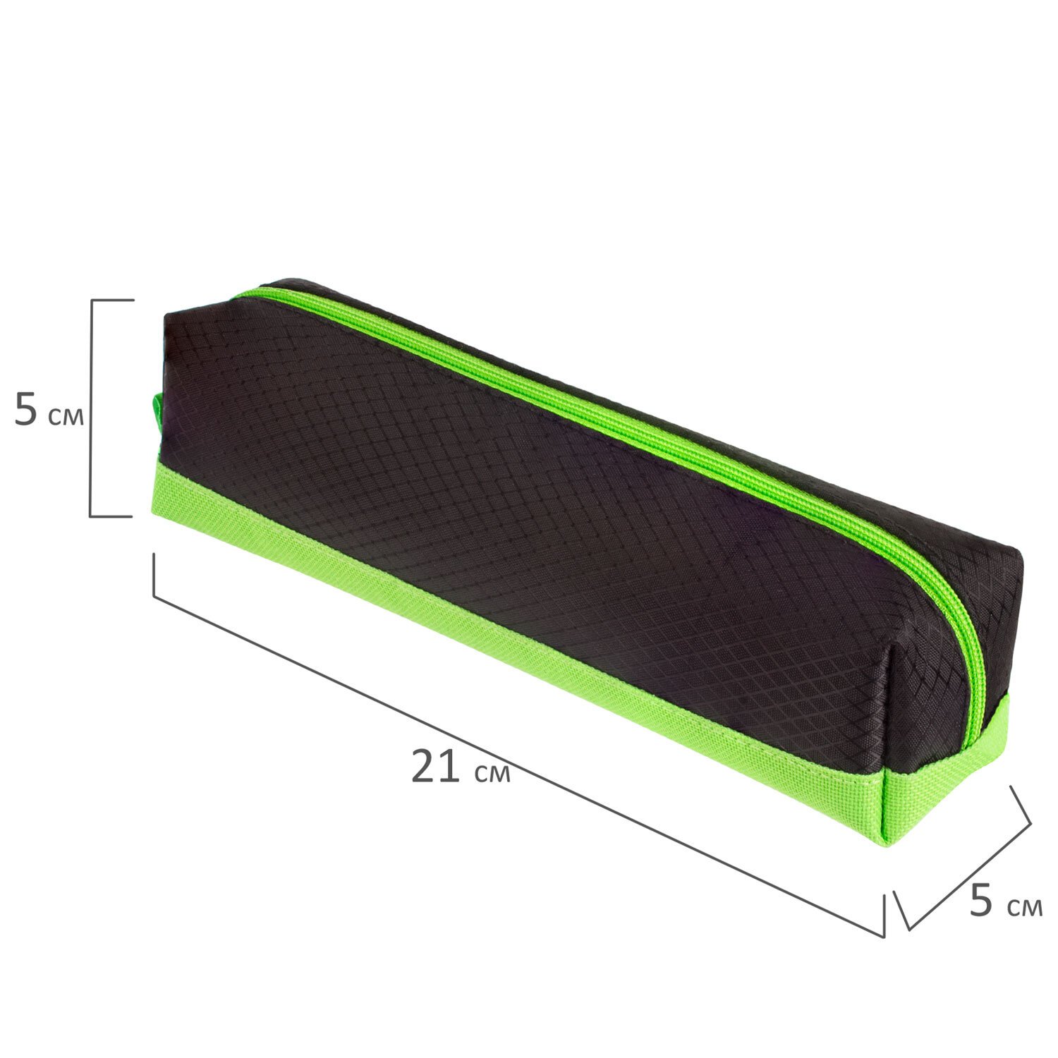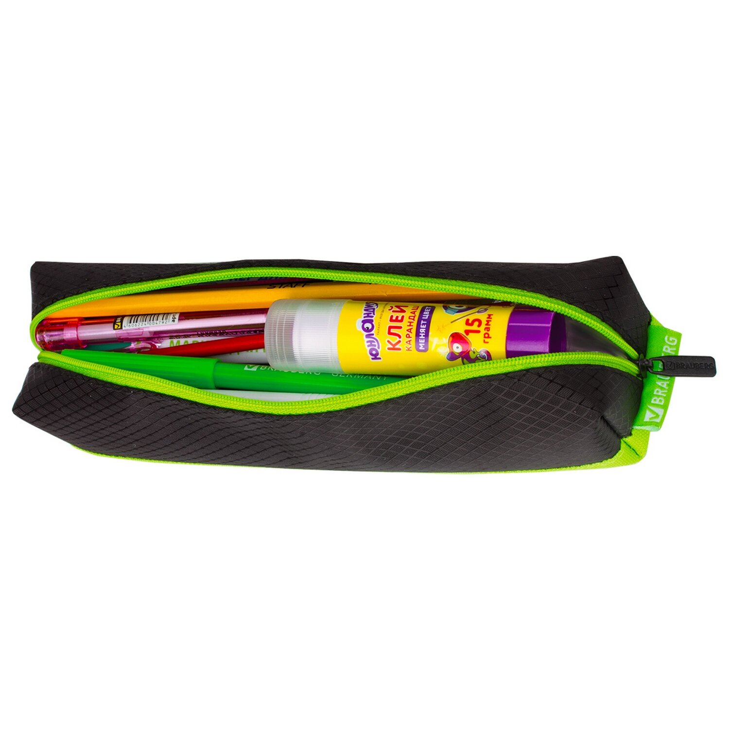 Пенал-косметичка BRAUBERG, мягкий, "Black&Bright", черно-зеленый, 21х5х5 см, 229005