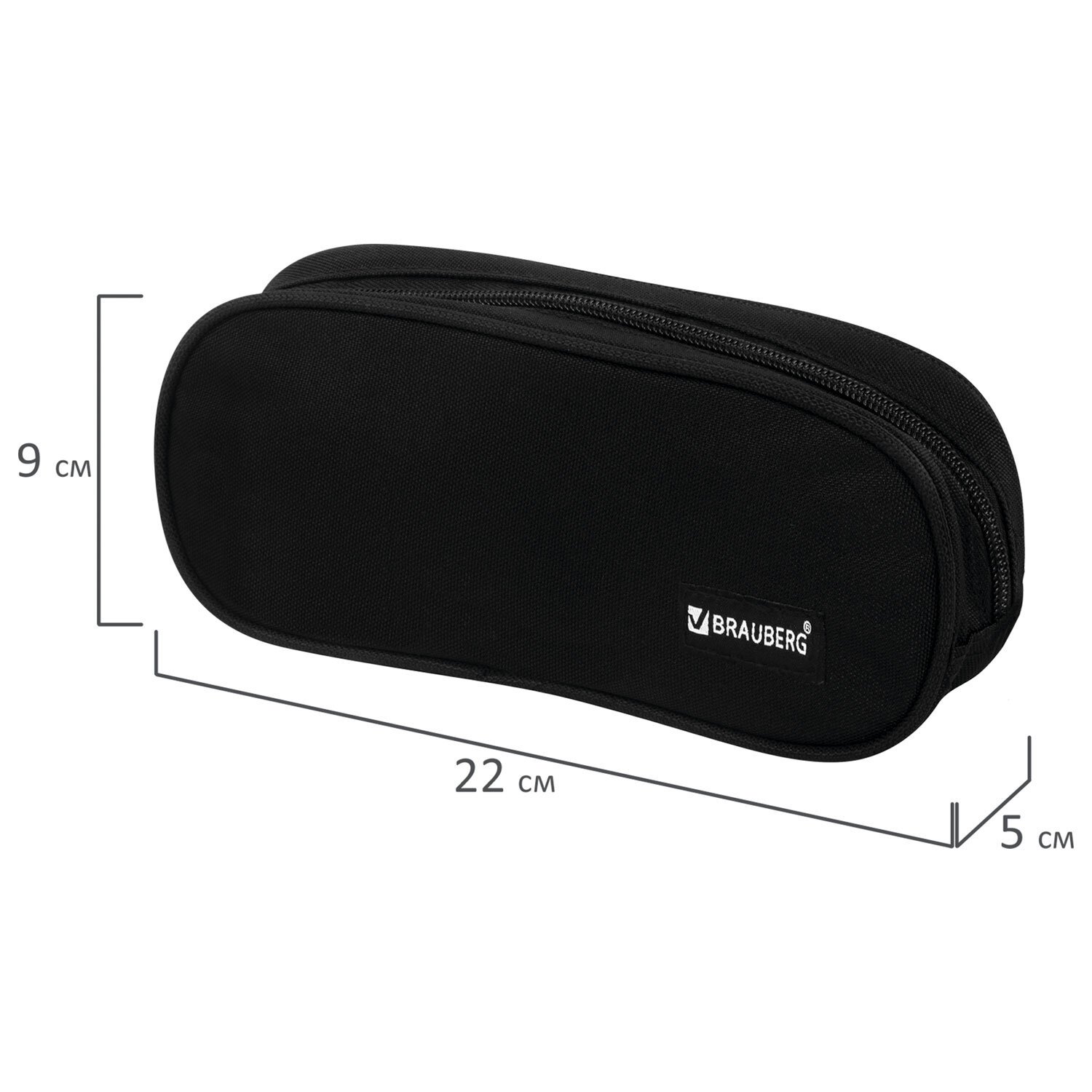 Пенал-косметичка BRAUBERG овальный, полиэстер, "Black", 22х9х5 см, 229271