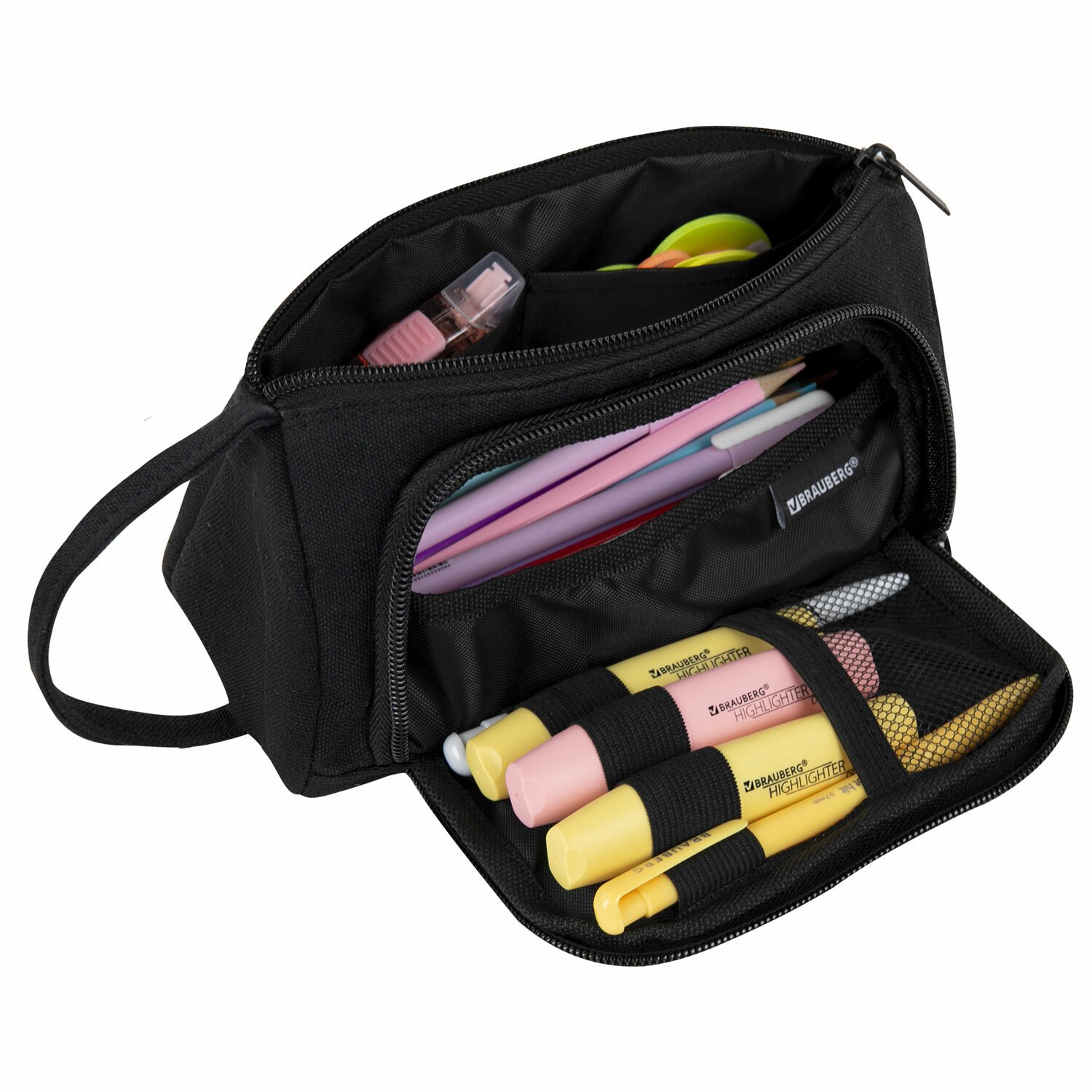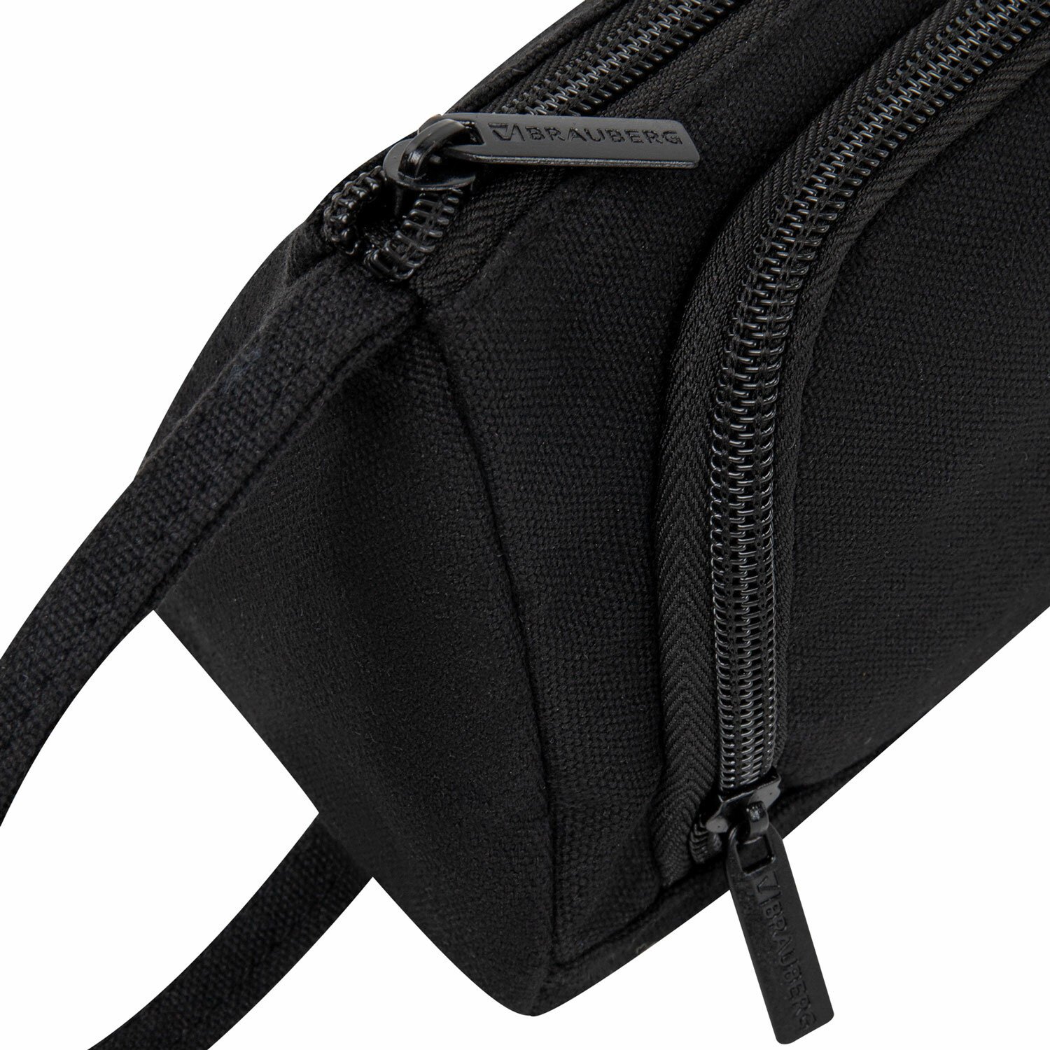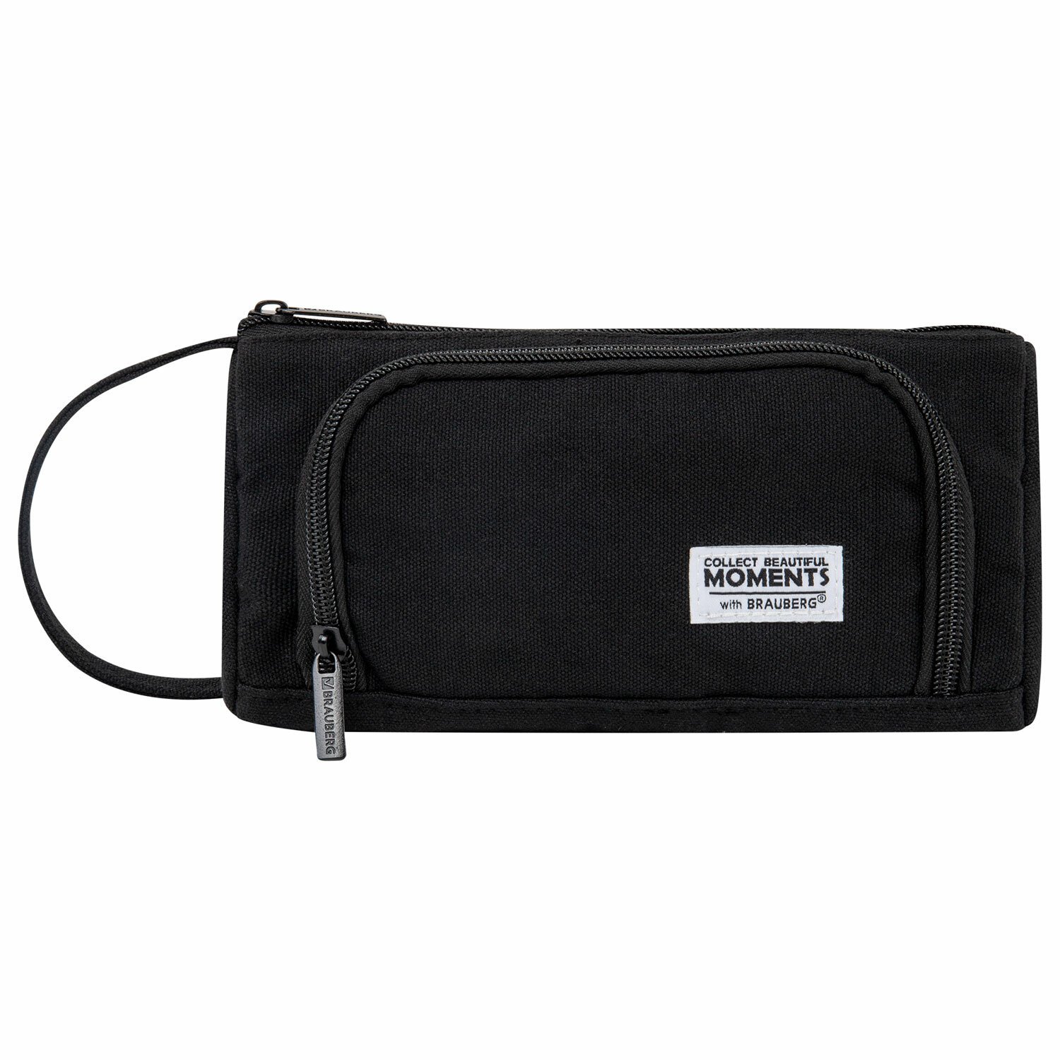 Пенал-косметичка BRAUBERG с ручкой, 1 откидная планка, полиэстер, 22x10х8 см, Black, 272339