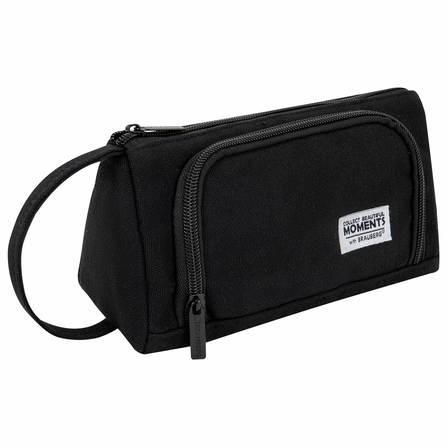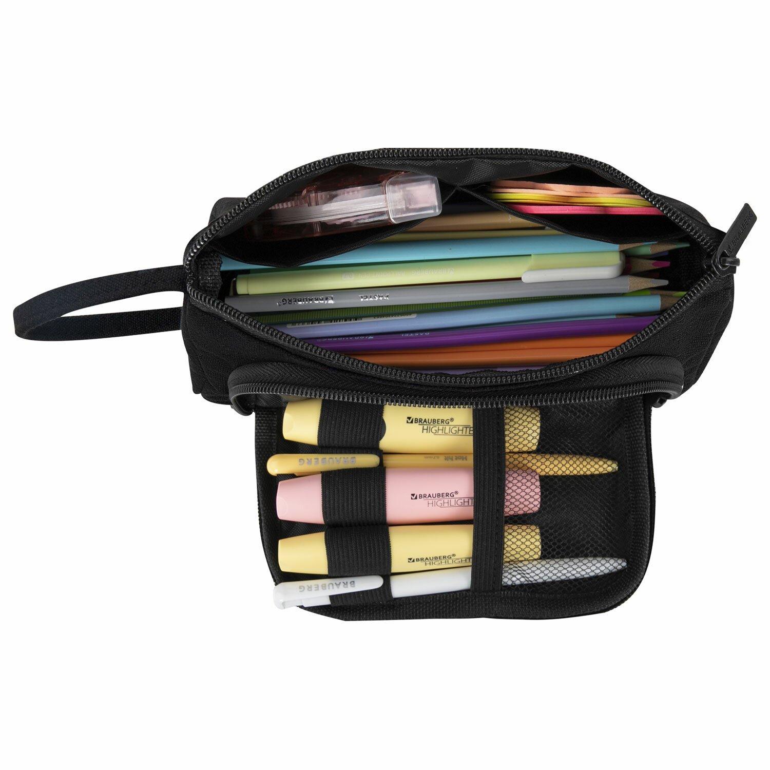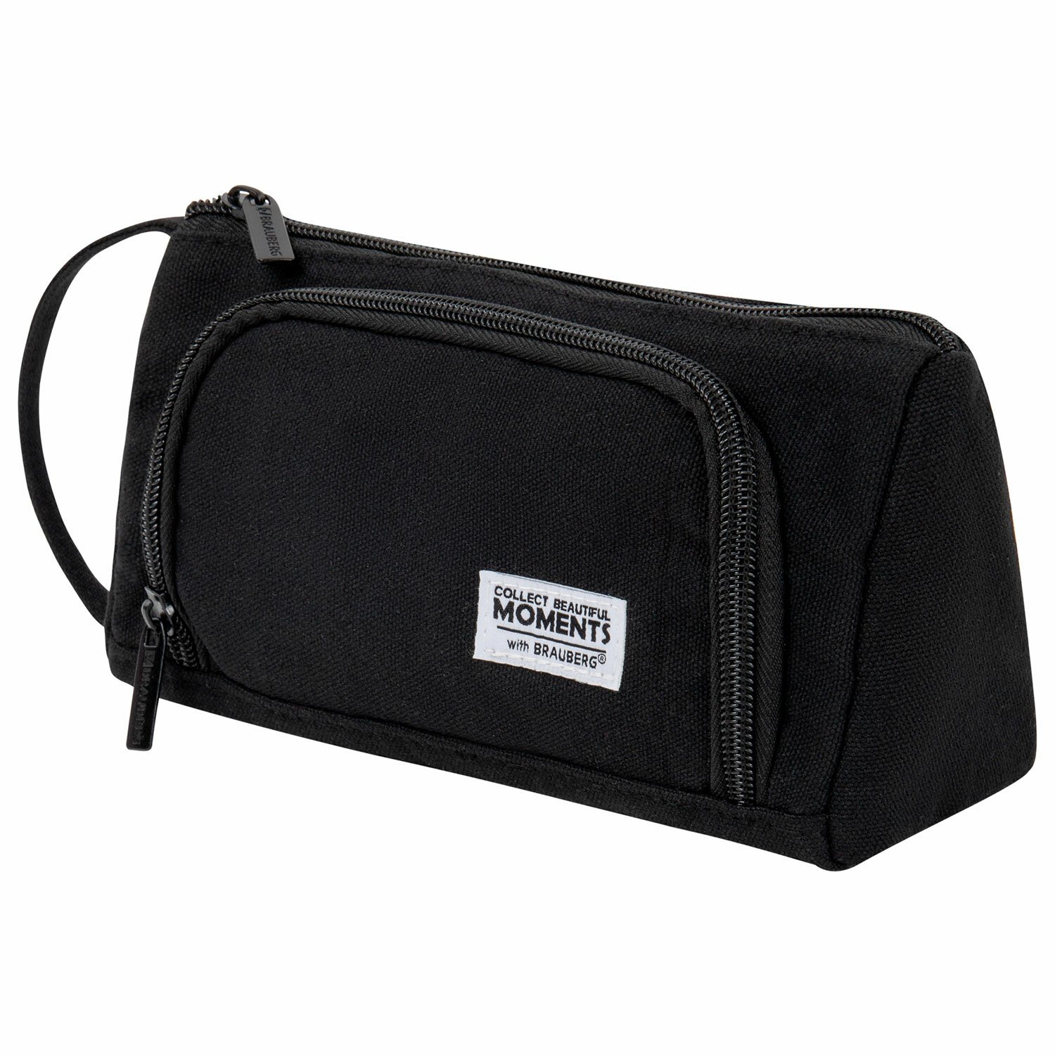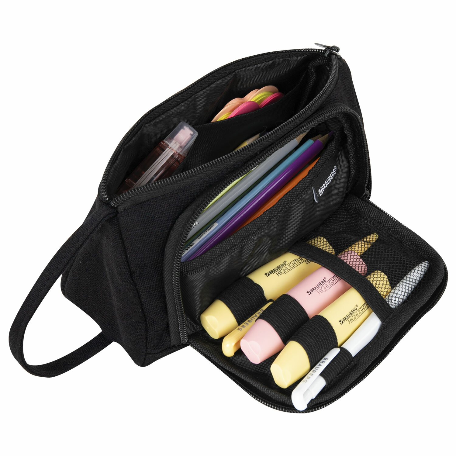 Пенал-косметичка BRAUBERG с ручкой, 1 откидная планка, полиэстер, 22x10х8 см, Black, 272339