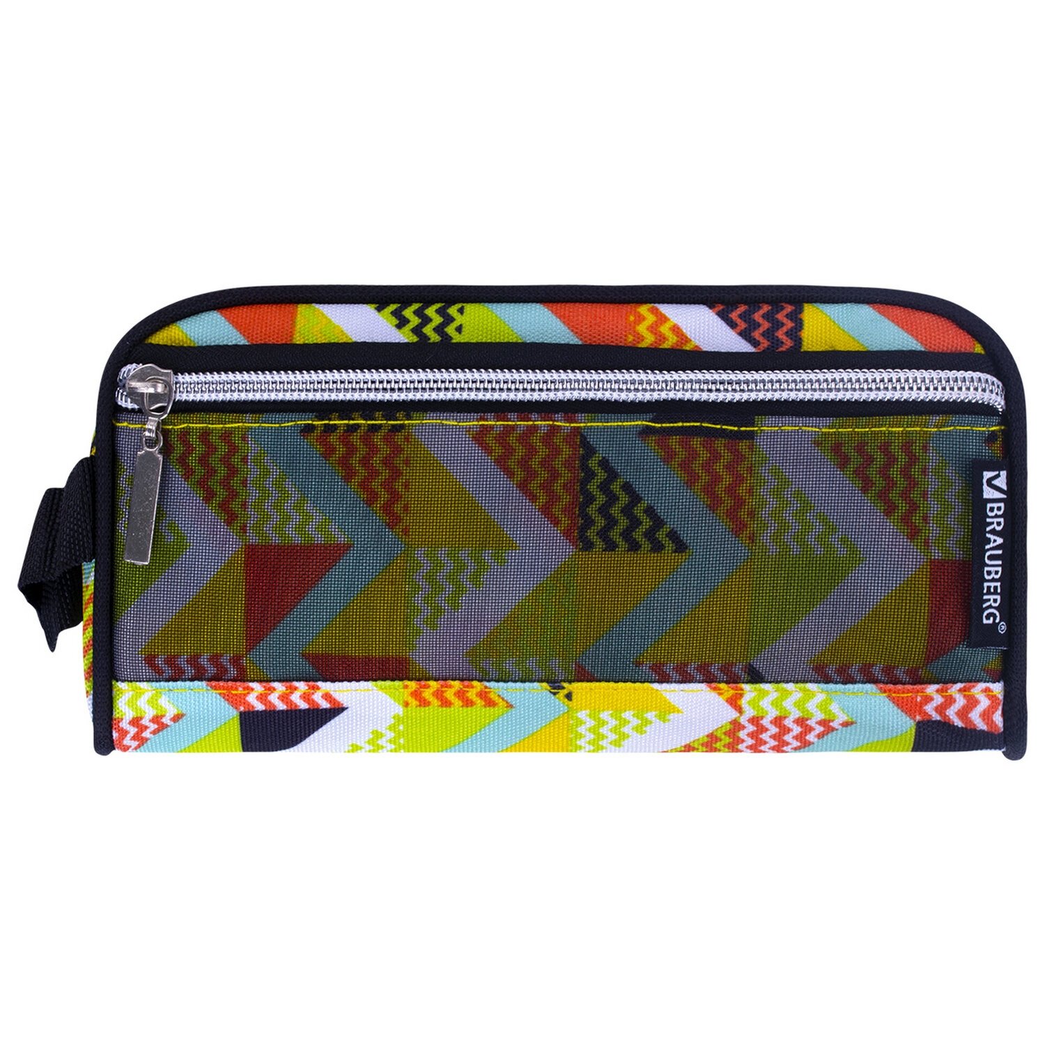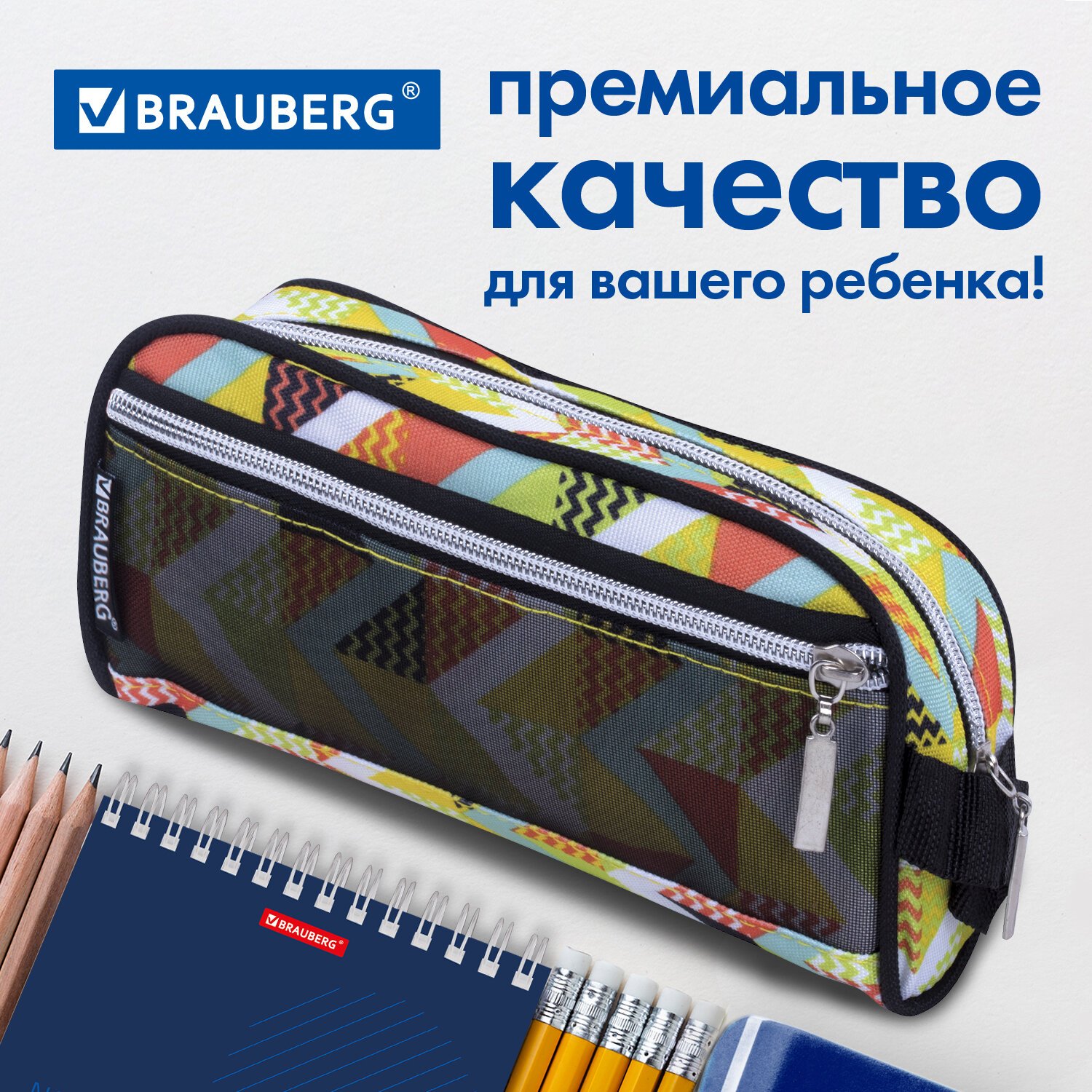 Пенал-косметичка BRAUBERG с ручкой и карманом из сетки выполнен из прочного полиэстера. Надежная молния оснащена металлическим бегунком. Вмещает до 60 канцелярских предметов стандартных размеров.