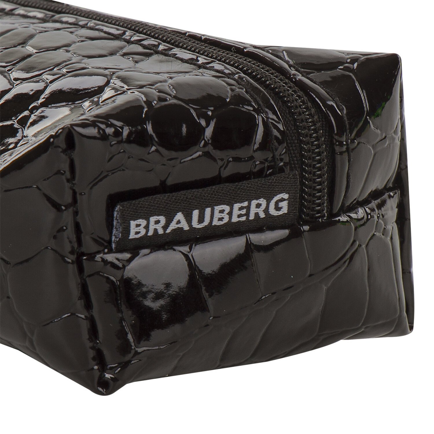 Пенал-косметичка BRAUBERG "Ultra black" выполнен из прочного мягкого глянцевого материала с фактурой под "крокодиловую кожу". Пенал вмещает до 50 канцелярских принадлежностей стандартных размеров.