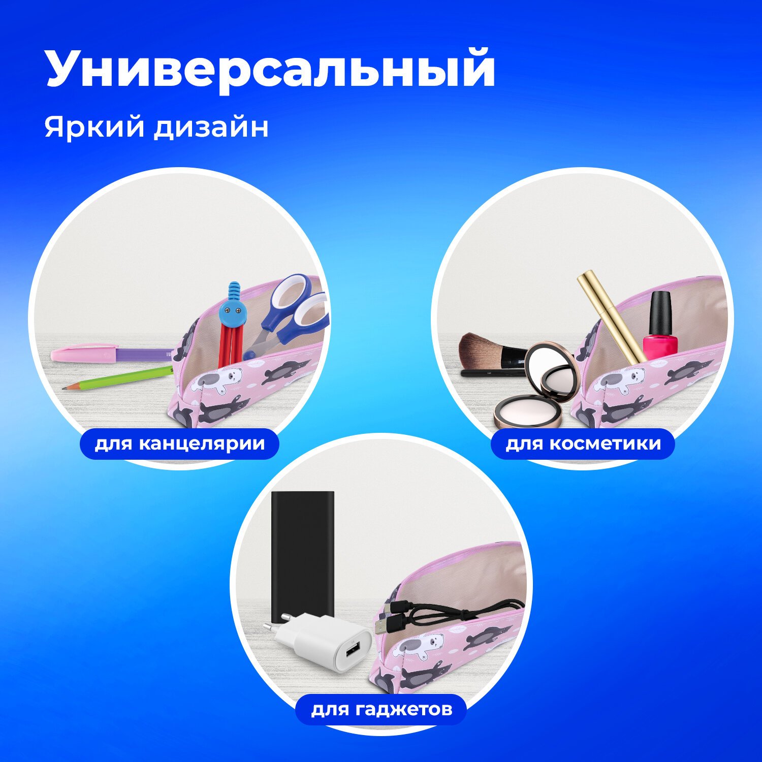 Пенал-косметичка BRAUBERG овальный, полиэстер, "Pink", 22х9х5 см, 229270