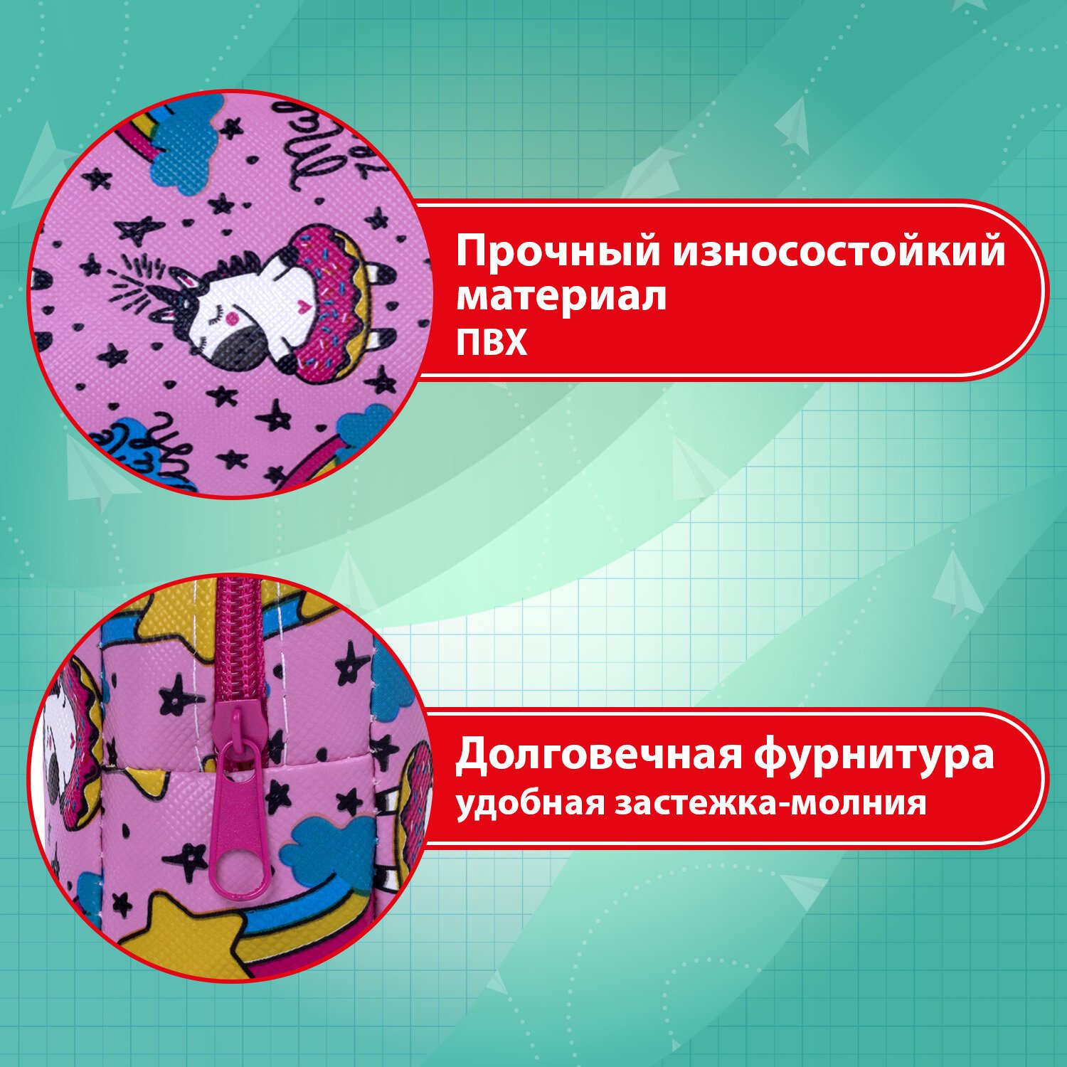 Материал пенала - ПВХ с цветной печатью и ярким дизайном.
