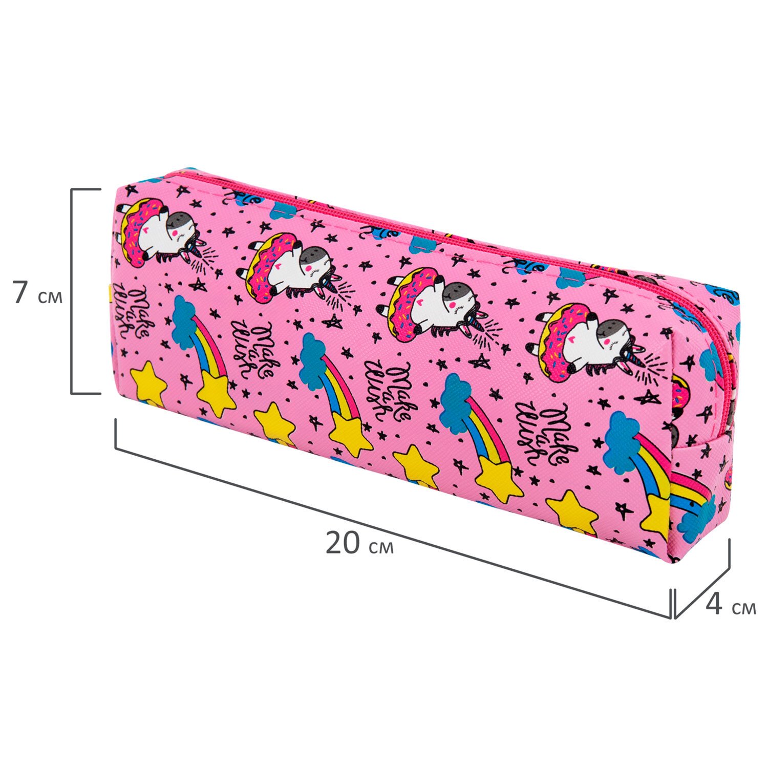 Пенал-косметичка ПИФАГОР, мягкий, "UNICORN", прямоугольный, 20х7х4 см, 229265