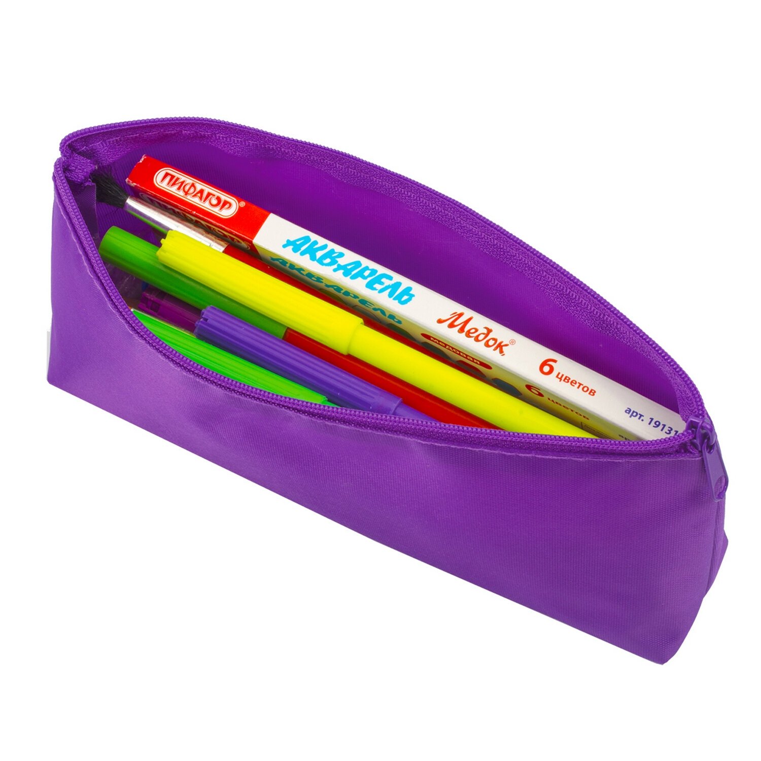 Пенал-косметичка ПИФАГОР на молнии, текстиль, фиолетовый, 19х4х9 см, 229003