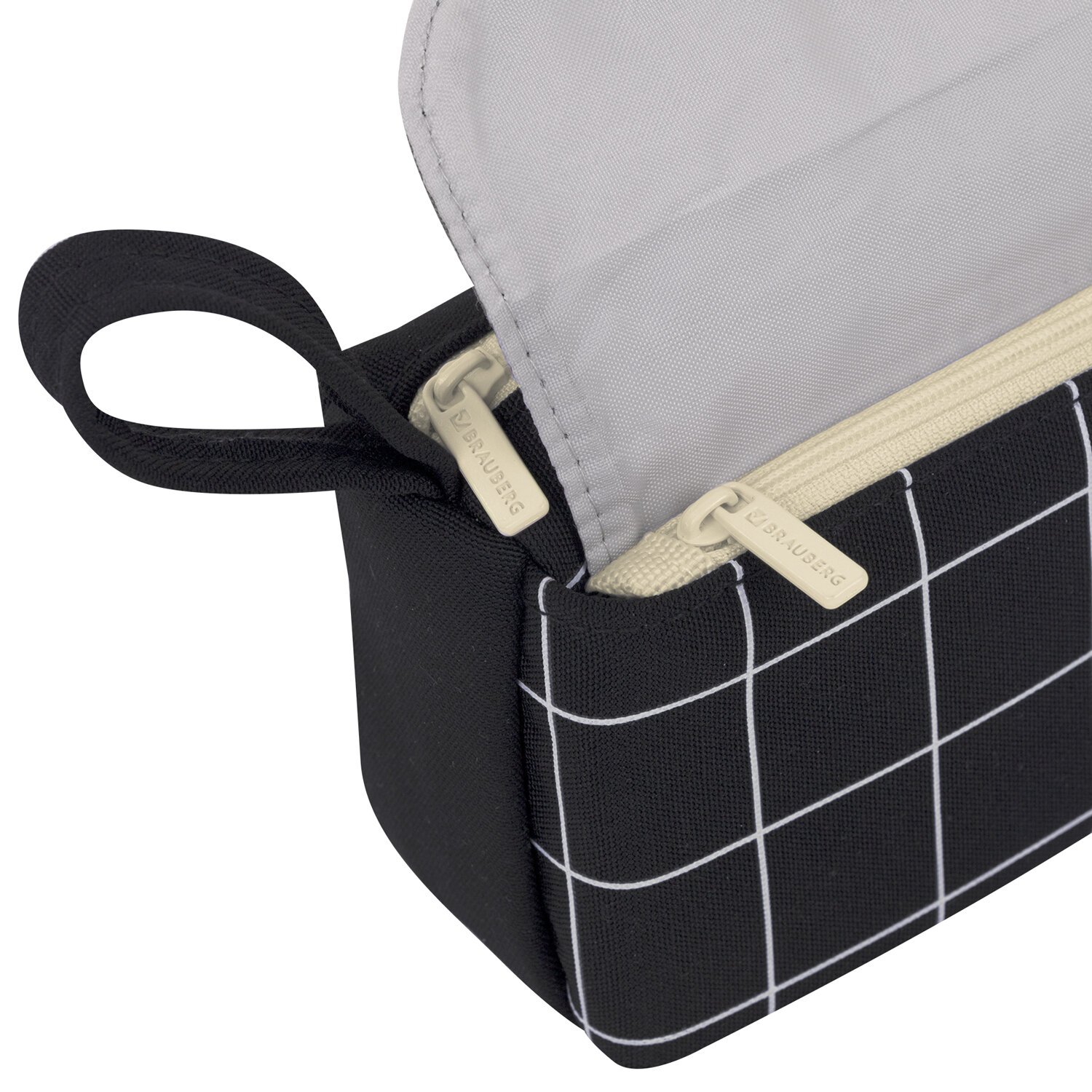 Пенал мягкий BRAUBERG "Black checkered" предназначен для хранения школьных принадлежностей, вмещает до 50 канцелярских предметов стандартного размера.