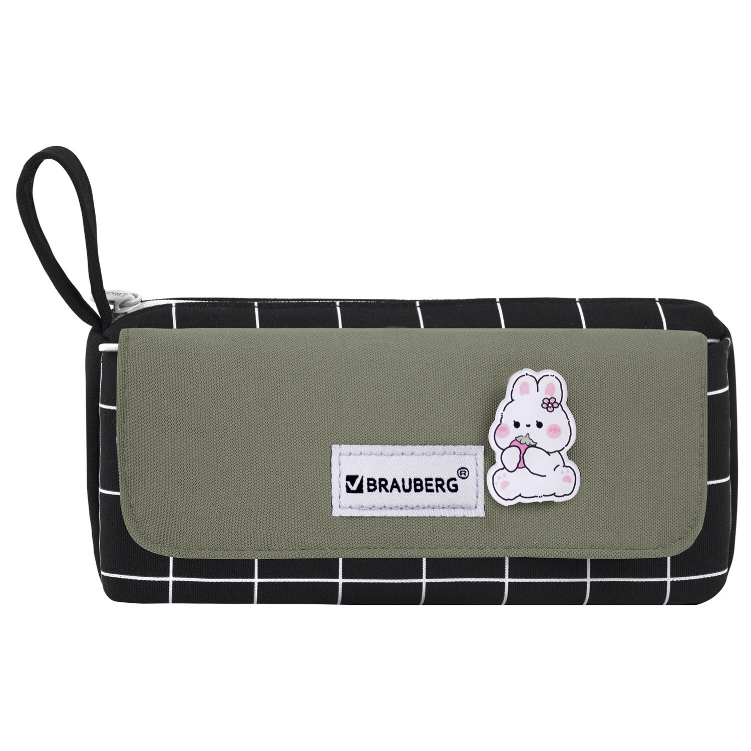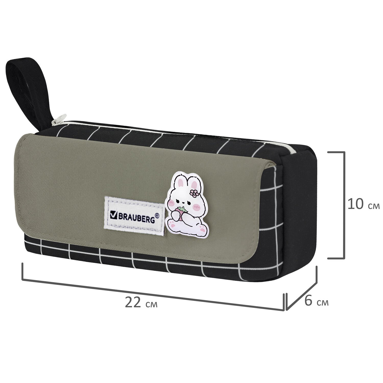 Пенал мягкий BRAUBERG, 1 отделение, карман на липучке, значок, 22х10х6 см, Black checkered, 273579